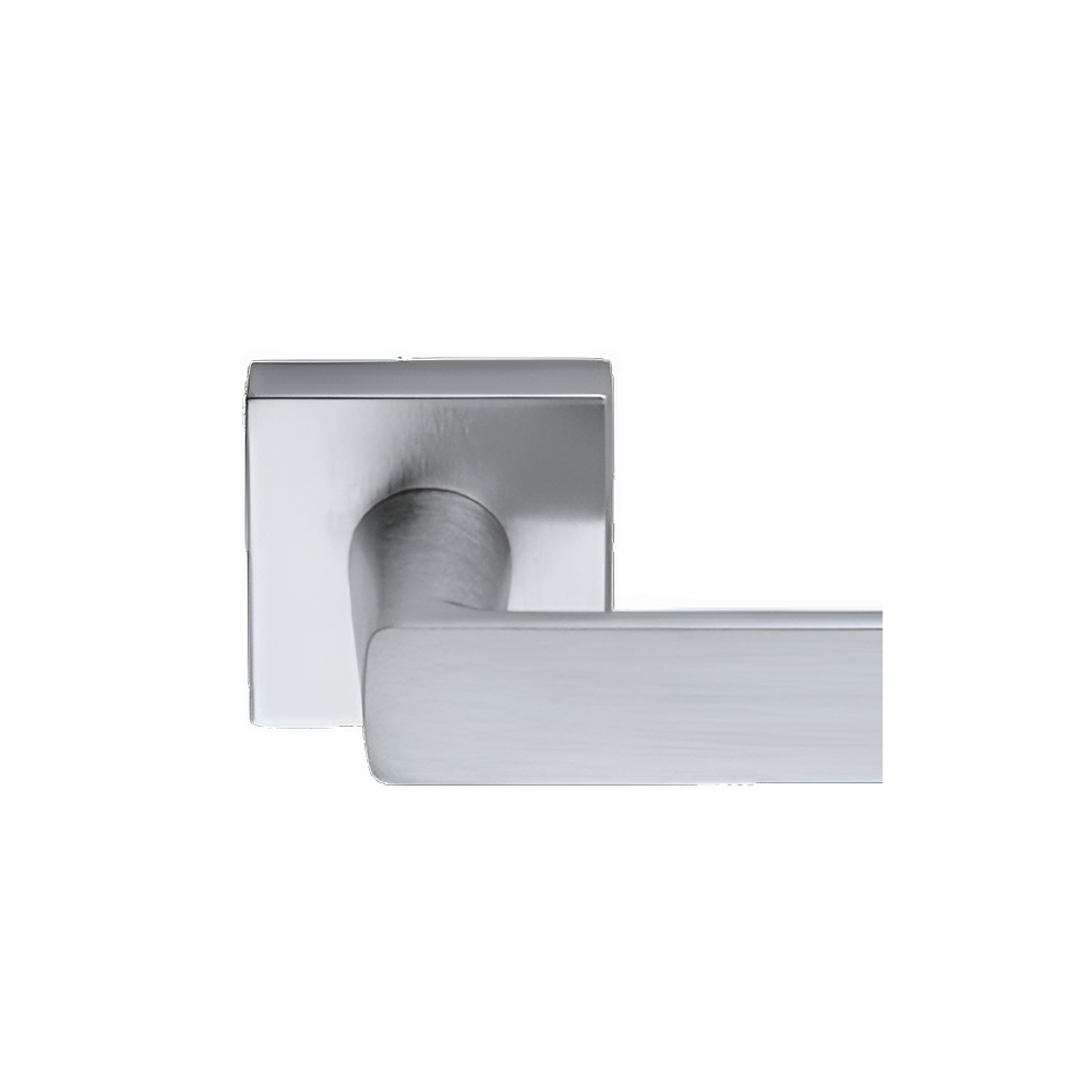 Rozettás ajtókilincs bejárati, szögletes 45*45mm-es cilinderbetétes ajtóhoz cilinderes alsó rozettával.