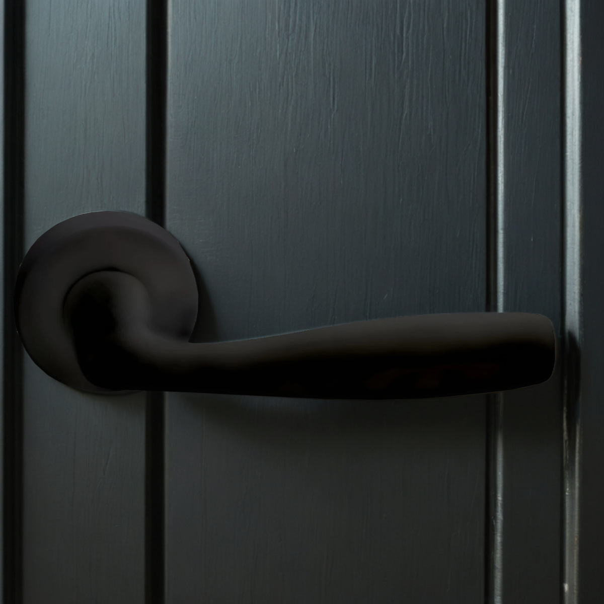 Alumínium fekete ajtókilincs, rozettás. Az ajtókilincs igazán elengedhetetlen kiegészítő minden ajtóhoz. Nemcsak funkcionális elem, de a belső tér stílusához is hozzá tud járulni.