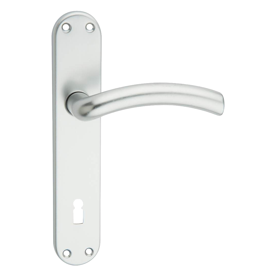 Ajtókilincs 55mm-es zártávolságú normál záras beltéri ajtóhoz, eloxált alumínium.