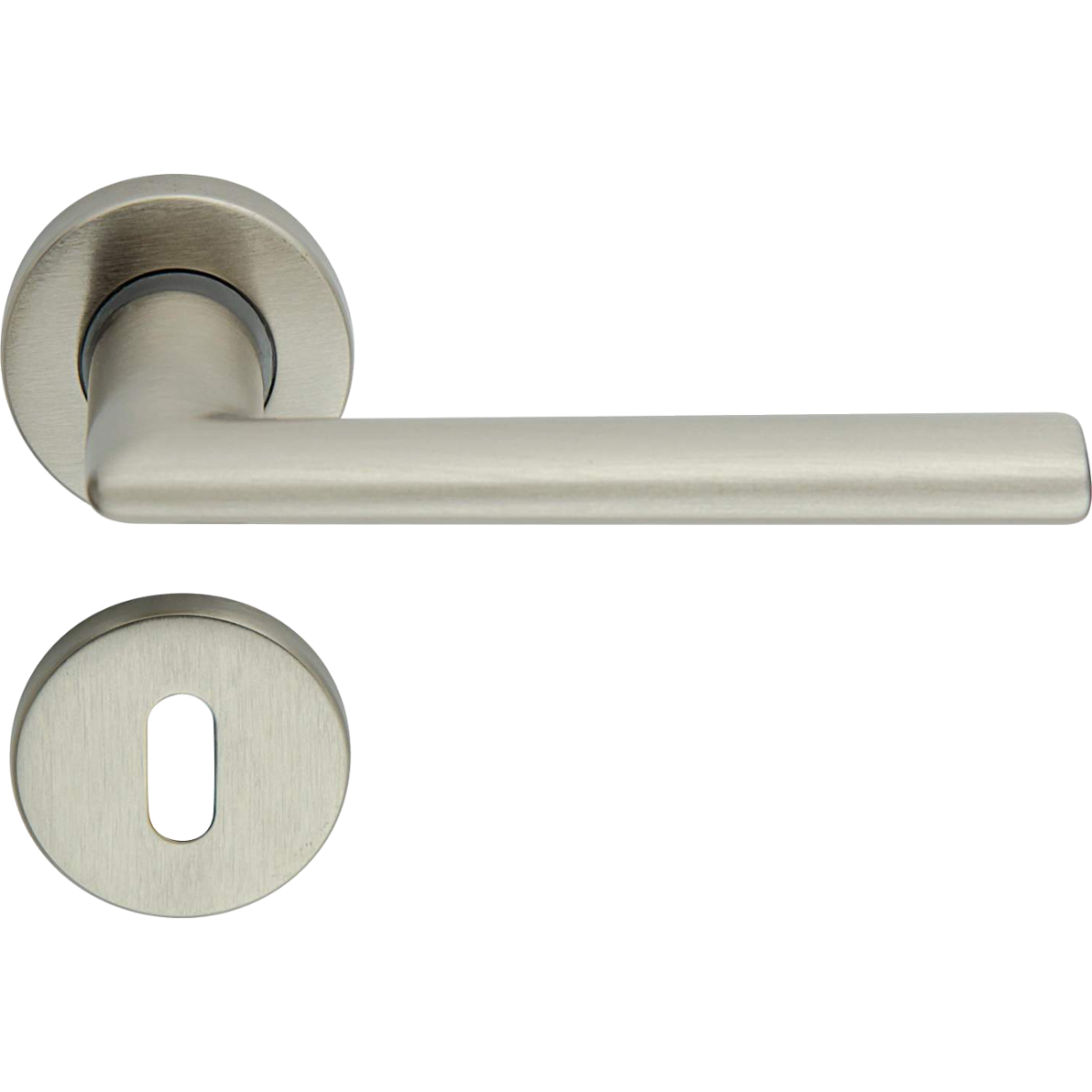 Ajtókilincs 45mm-es rozettával normál záras beltéri ajtóhoz, nikkelezett kivitel.