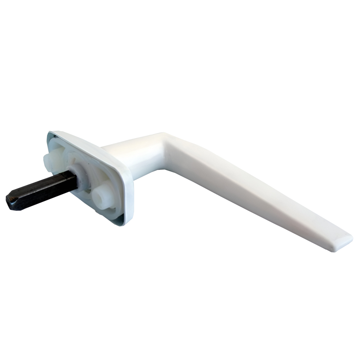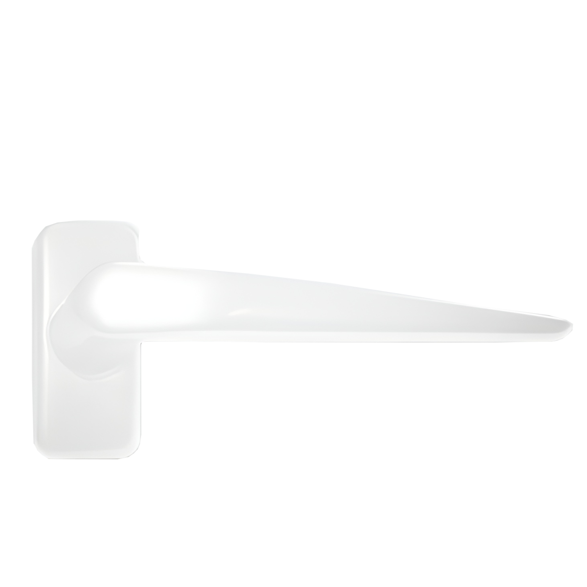Porszórt ablakfélkilincs erkélyhez, fehér színben és alumíniumból készült. Tökéletesen illeszkedik az ablakhoz ez az elegáns ablakfélkilincs.