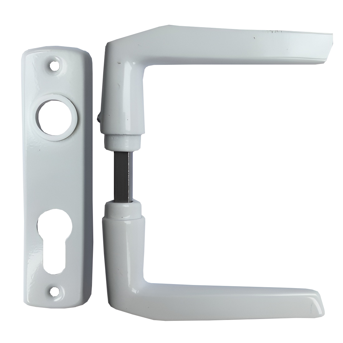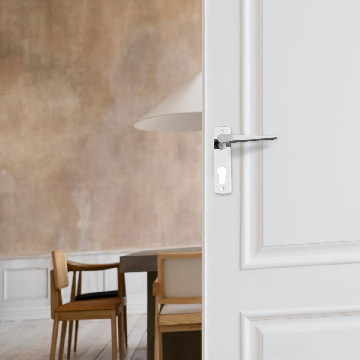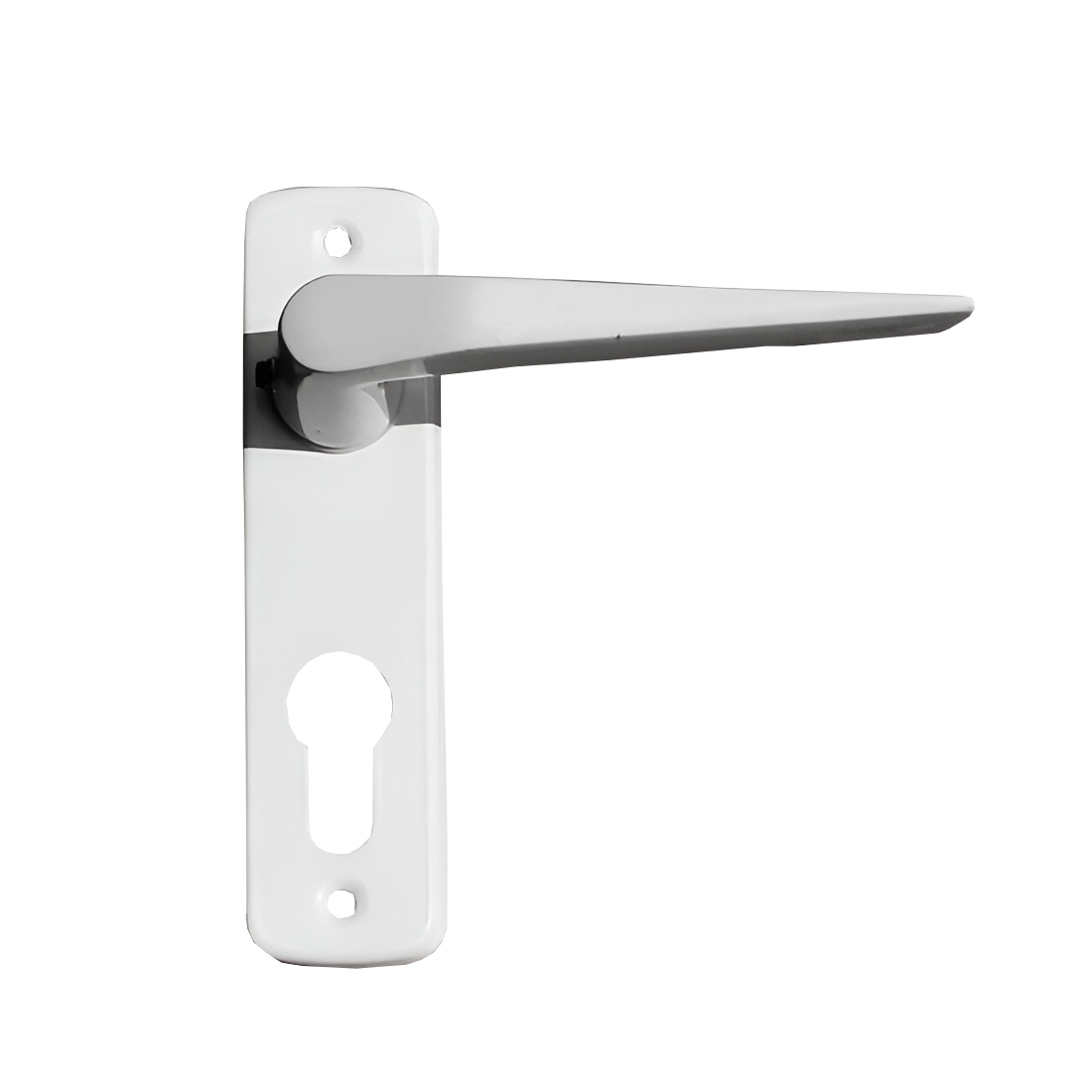Porszórt ajtókilincs (CZ 410) + ajtócím lővér fehér színben, alumíniumból, 55 mm. Az ajtókilincs igazán elengedhetetlen kiegészítő minden ajtóhoz. Nemcsak funkcionális elem, de a tér stílusához is hozzá tud járulni.