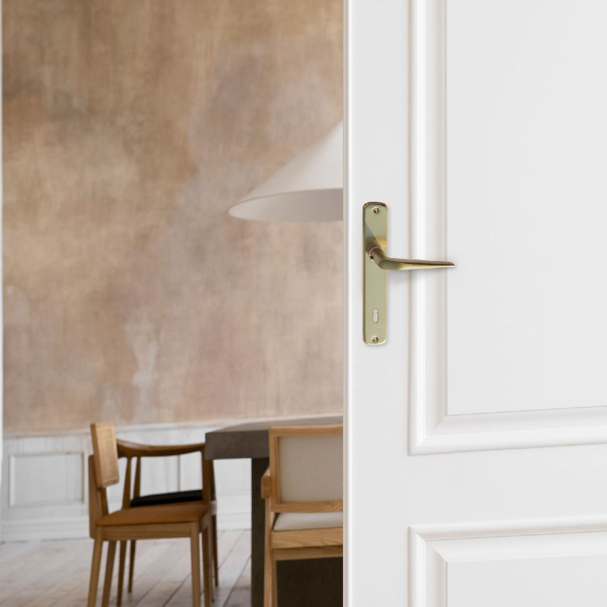 Eloxált ajtókilincs (NZ 410) + ajtócím pezsgő színben, alumíniumból, 90 mm. Az ajtókilincs igazán elengedhetetlen kiegészítő minden ajtóhoz. Nemcsak funkcionális elem, de a tér stílusához is hozzá tud járulni.