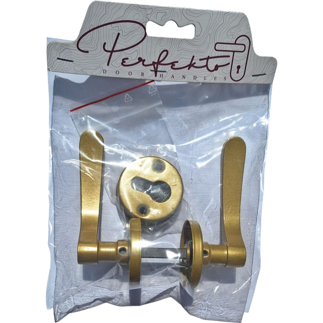 Egyszerű kivitelű, rozettás ajtókilincs, porszórt alumínium alapanyagból, arany színben. Típusa: CZ (cilinderzár) = bejárati/biztonsági ajtókhoz. Könnyű szerelhetőség. Tartozéka négyzetvas és rögzítő csavarok.