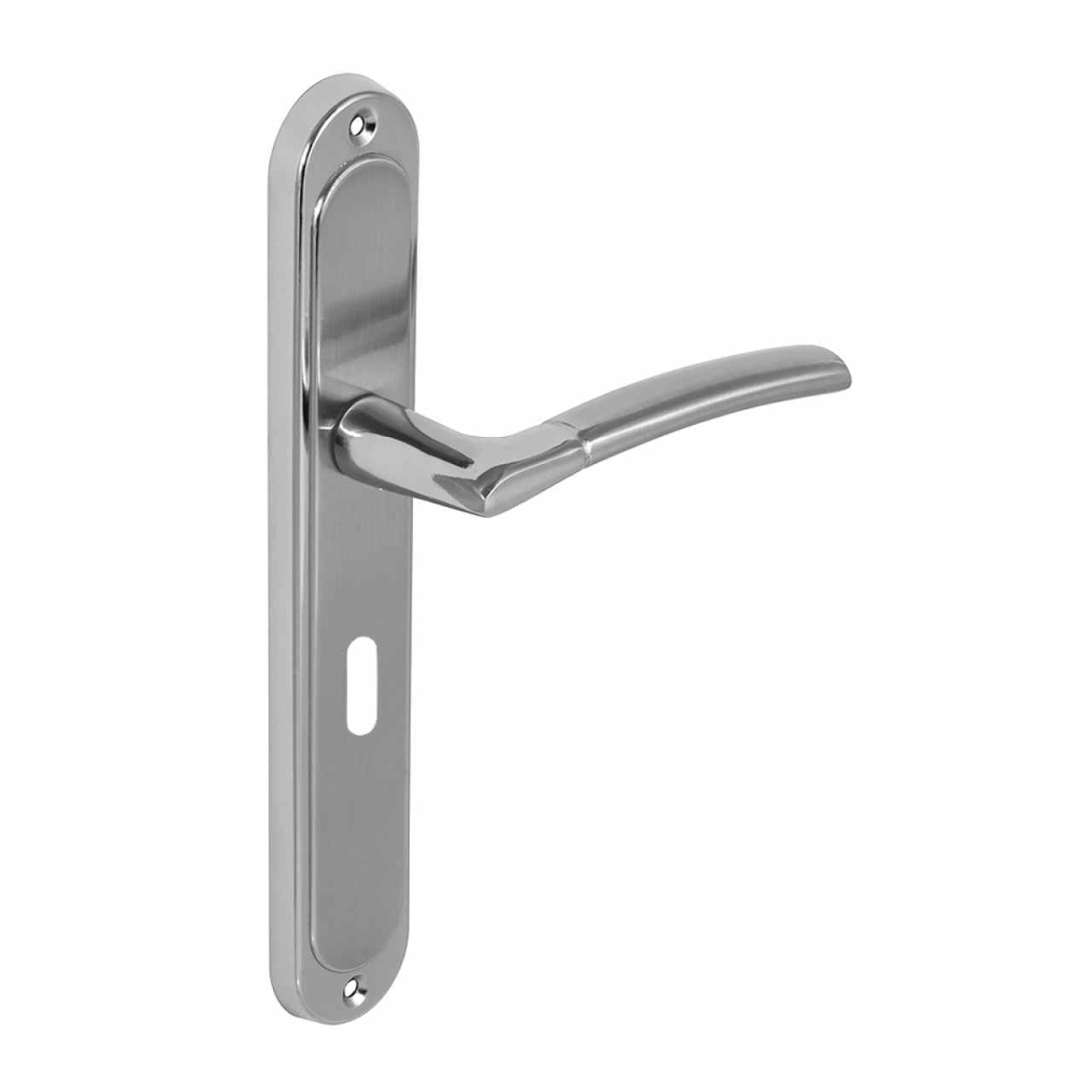 Stílusos megjelenésű ajtókilincs, kiválóan illeszkedik mind az új, mind a régebbi stílusú ajtókhoz. Szatén és fényes króm felületű, rugós müködtetésű, hósszúcímes, normálzár, beltéri ajtókhoz (55mm). Alumínium ötvözetből készült. Tartozékok: négyzetvas, rögzítő csavarok.