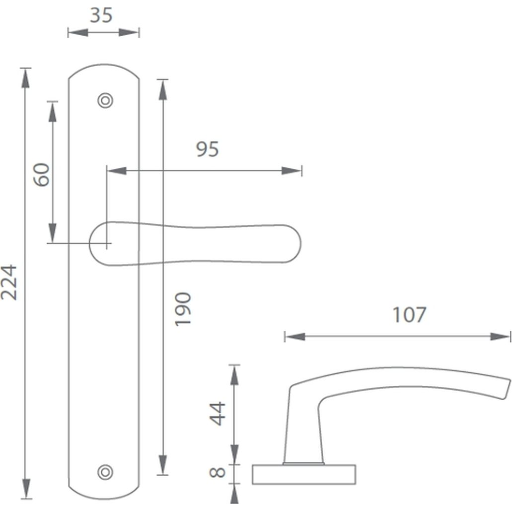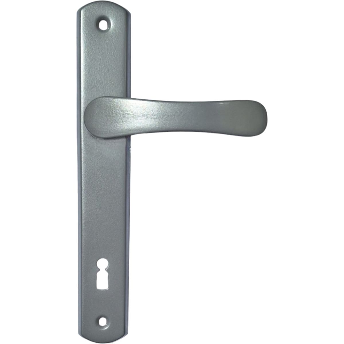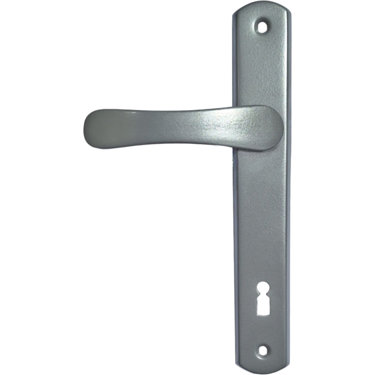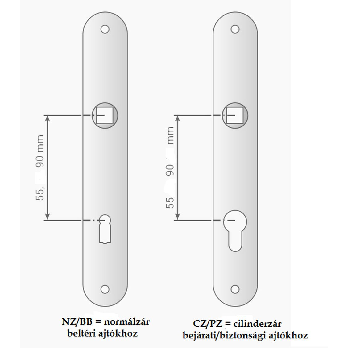 Egyszerű kivitelű ajtókilincs, porszórt alumínium alapanyagból, szürke színben. Típusa: 90NZ (normálzár) = beltéri ajtókhoz (90mm). Könnyű szerelhetőség. Tartozéka négyzetvas és rögzítő csavarok.