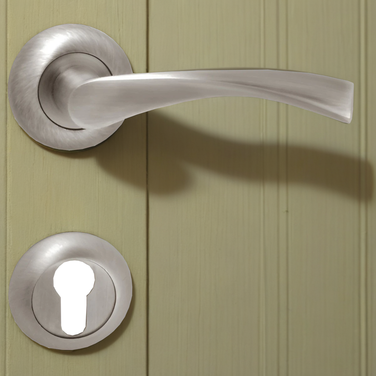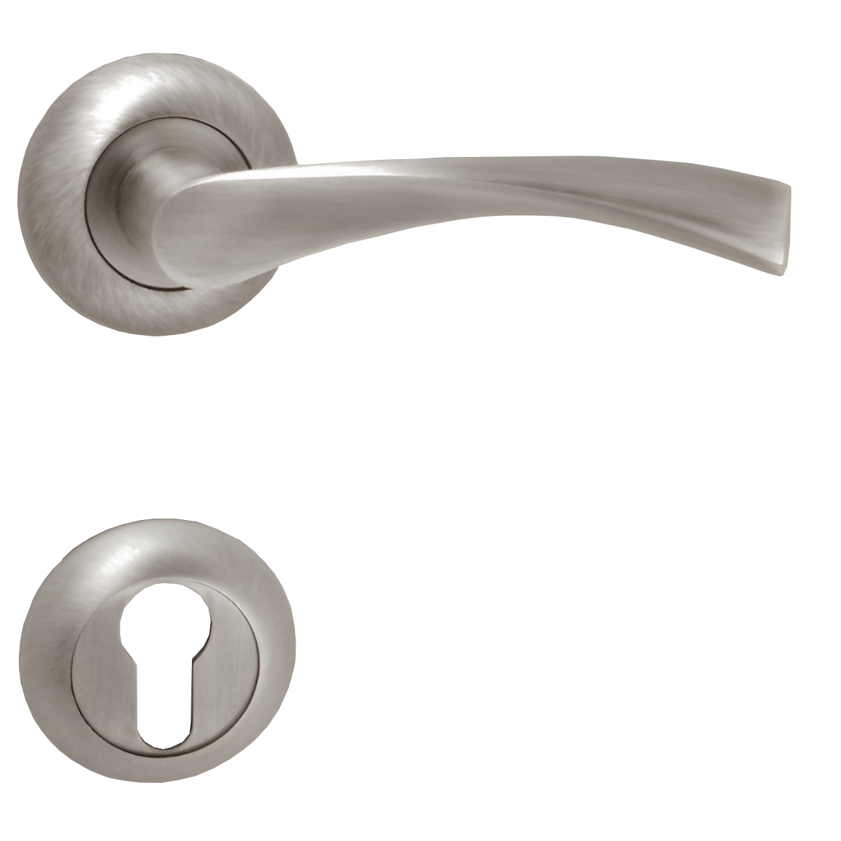 Rozettás ajtókilincs szatén nikkel felülettel. Az ajtókilincs igazán elengedhetetlen kiegészítő minden ajtóhoz. Nemcsak funkcionális elem, de a belső tér stílusához is hozzá tud járulni.