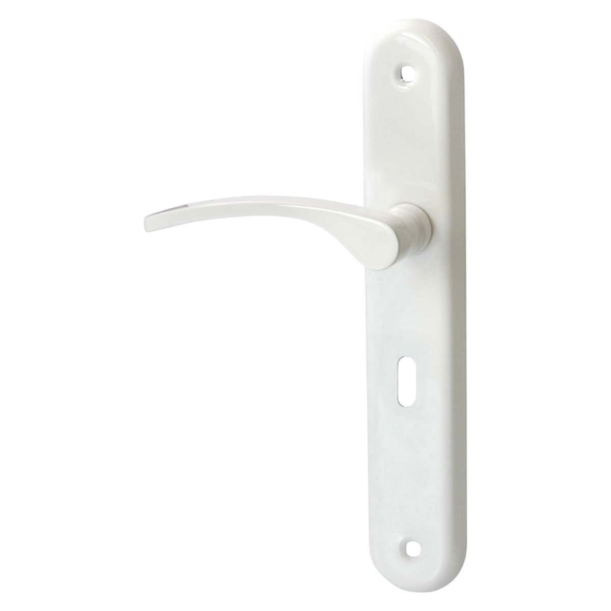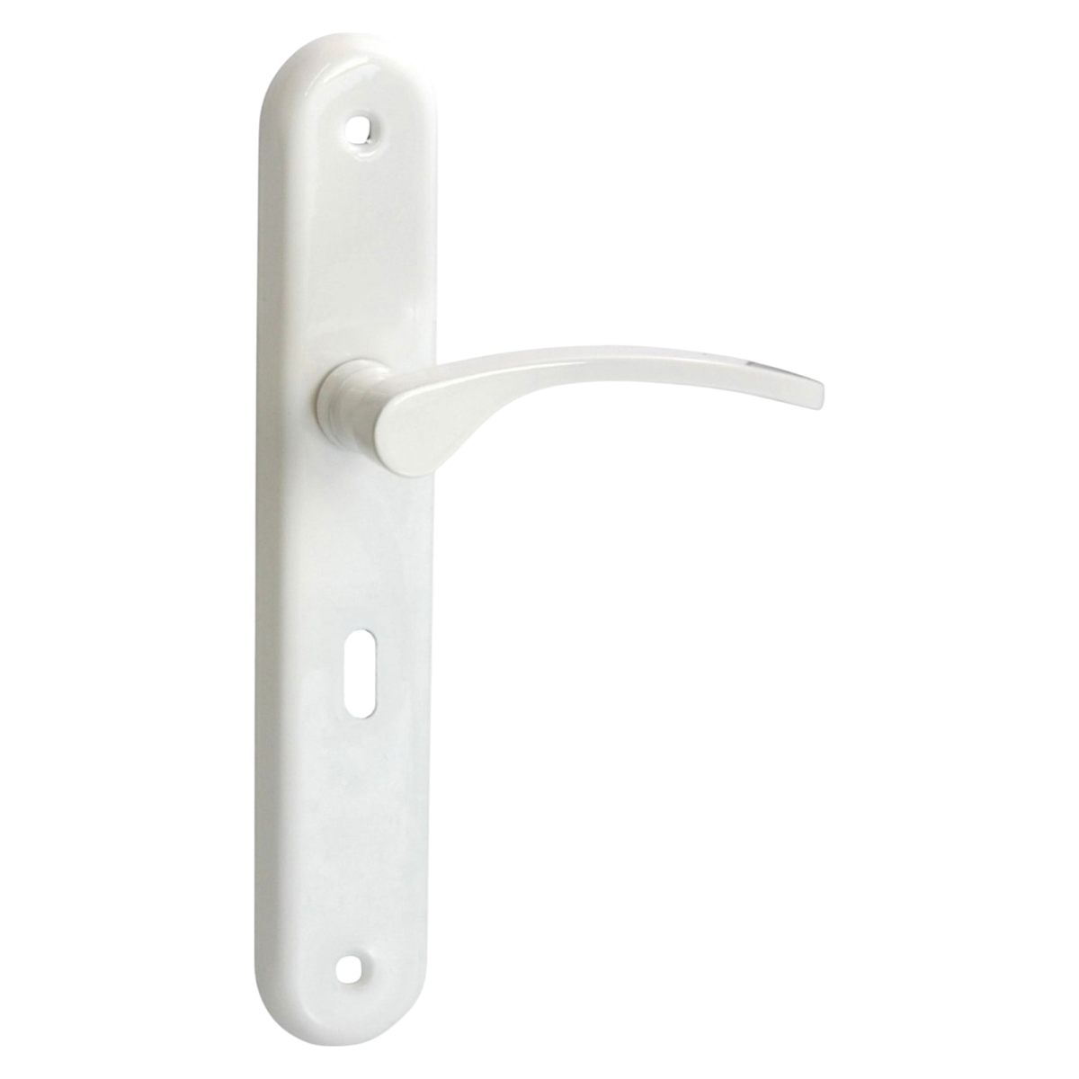 A Lana 55NZ típusú ajtókilincs egyszerű kialakításával és fehér színével praktikus megoldás beltéri ajtókhoz.