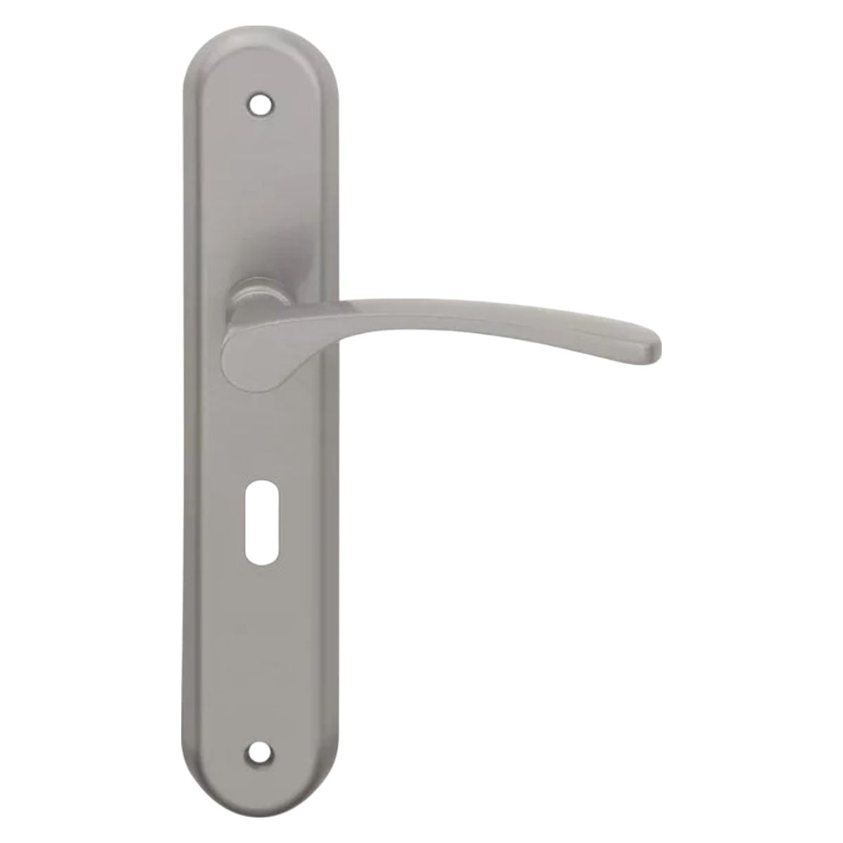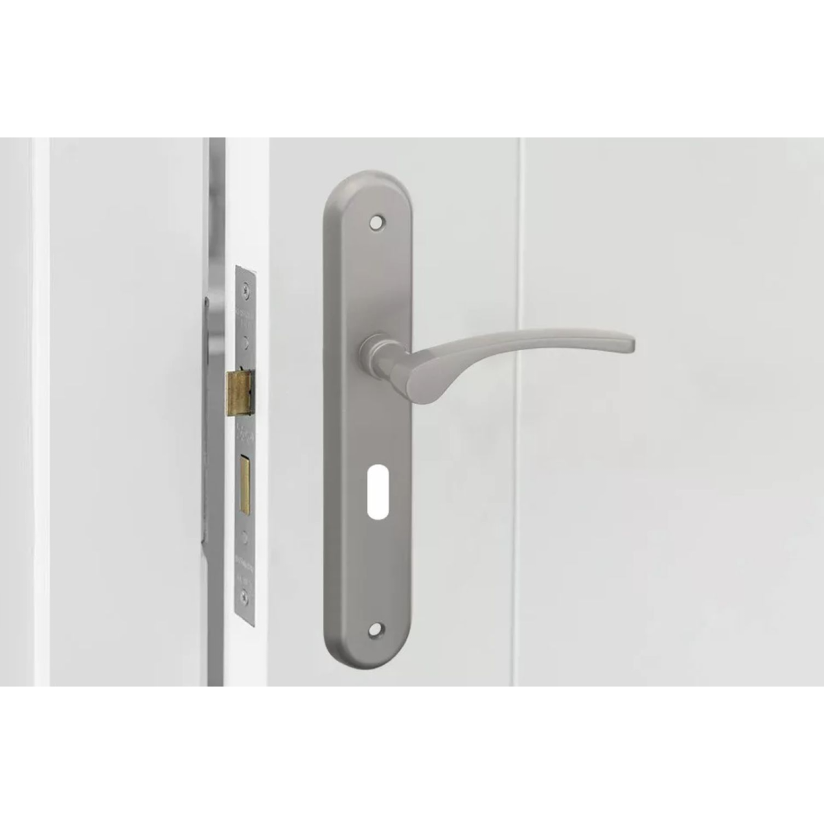 A porszórt alumíniumból készült szürke felület strapabíróbb használatot és esztétikus megjelenést biztosít. Normál záras kialakítása (55 mm) ideálissá teszi hagyományos beltéri ajtókhoz.