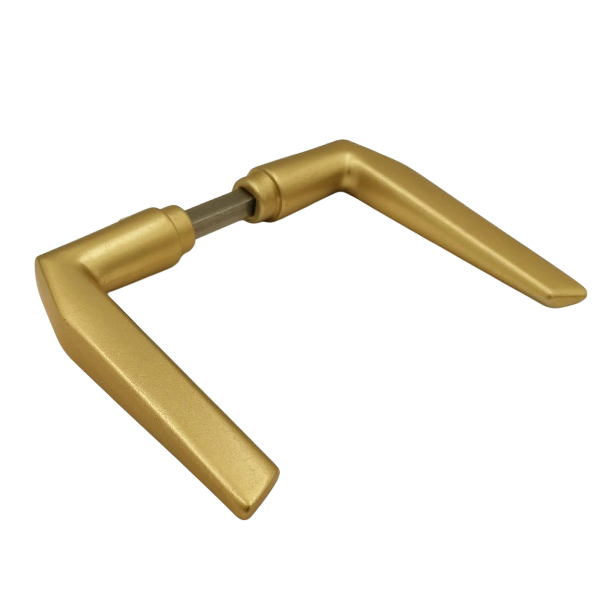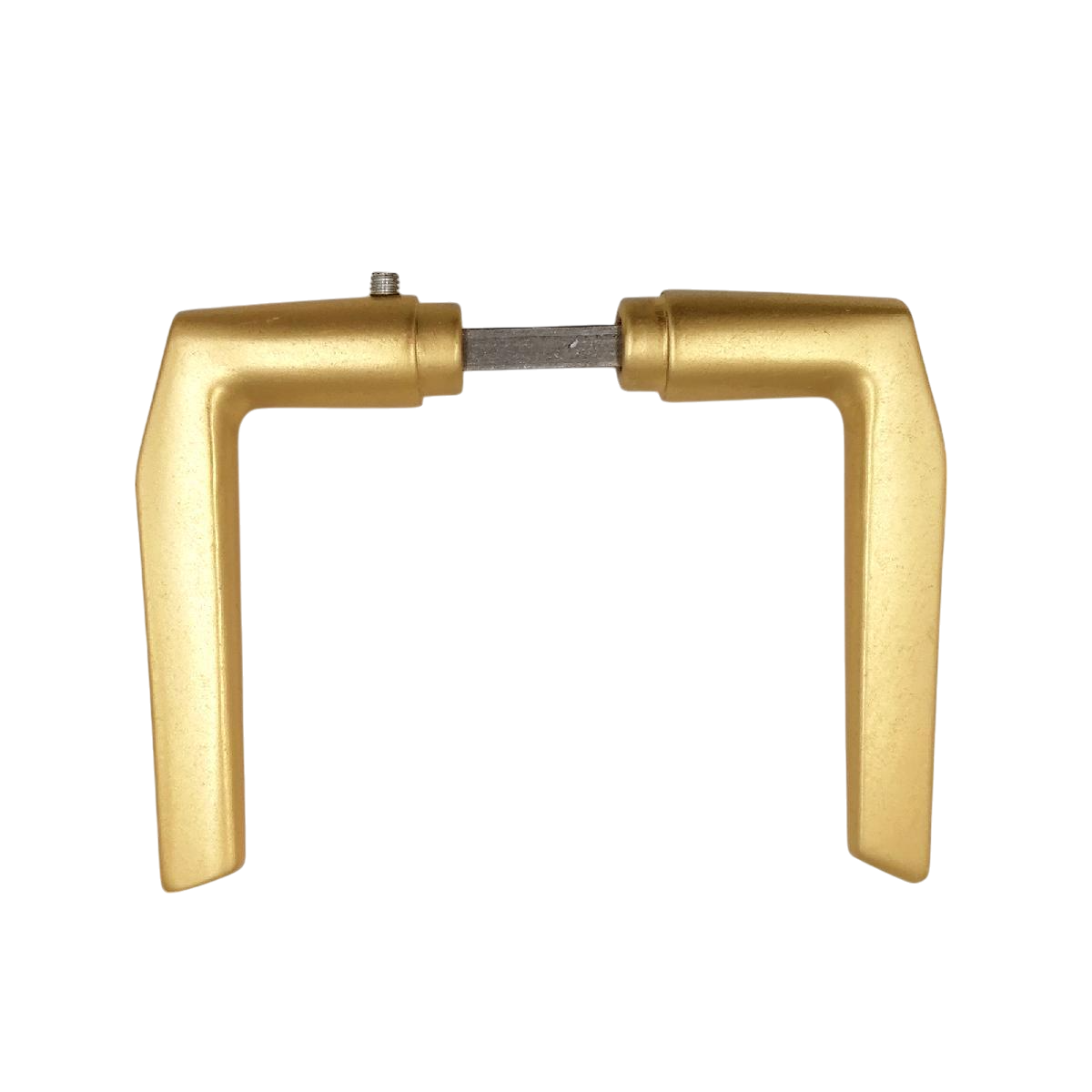 Alumíniumból készült, eloxált felületű, F3 (sötétsárga) színű hagyományos ajtókilincs.