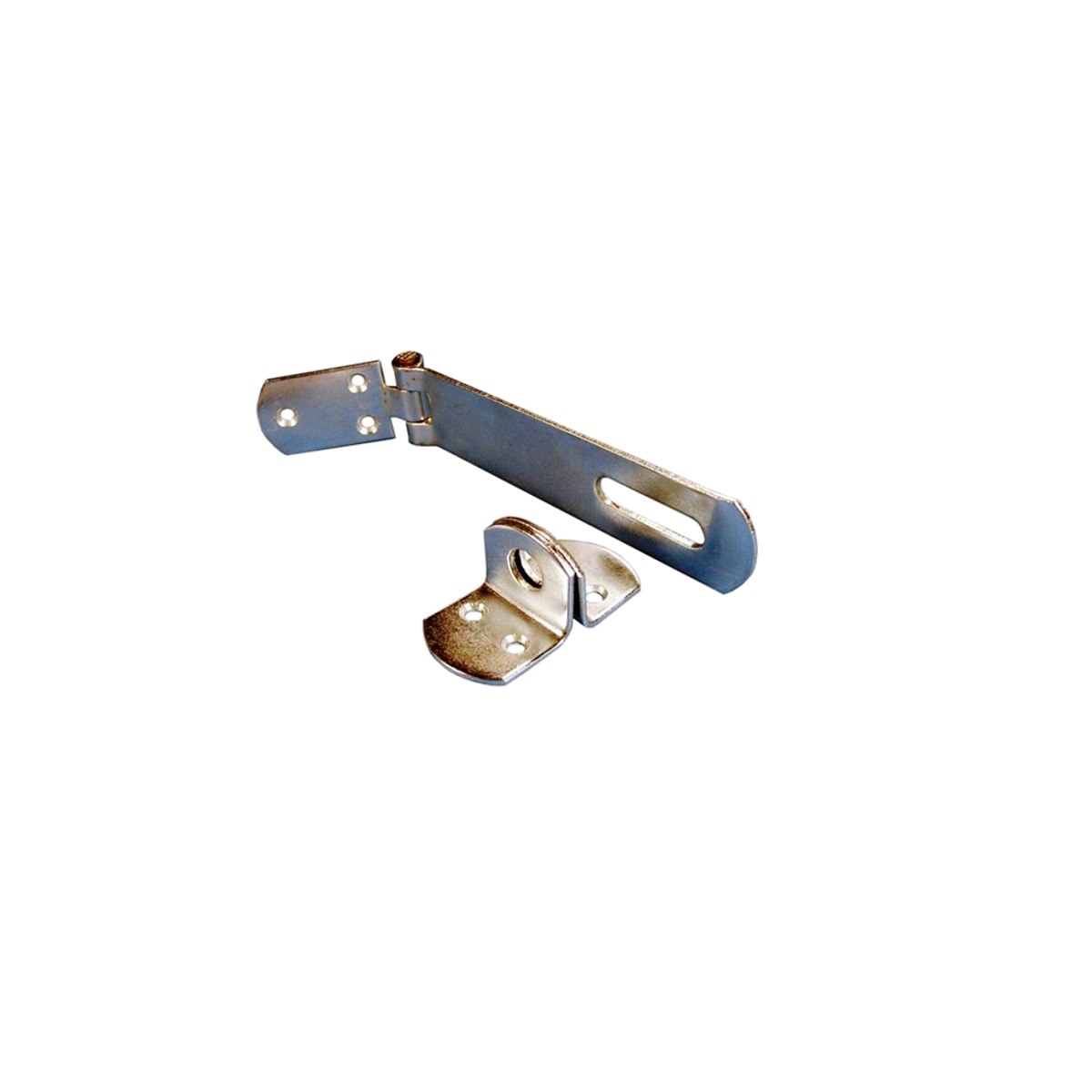 Horganyzott csuklós lakatpánt, mérete: 3x14 cm. Lakattal történő záráshoz szükséges pánt.