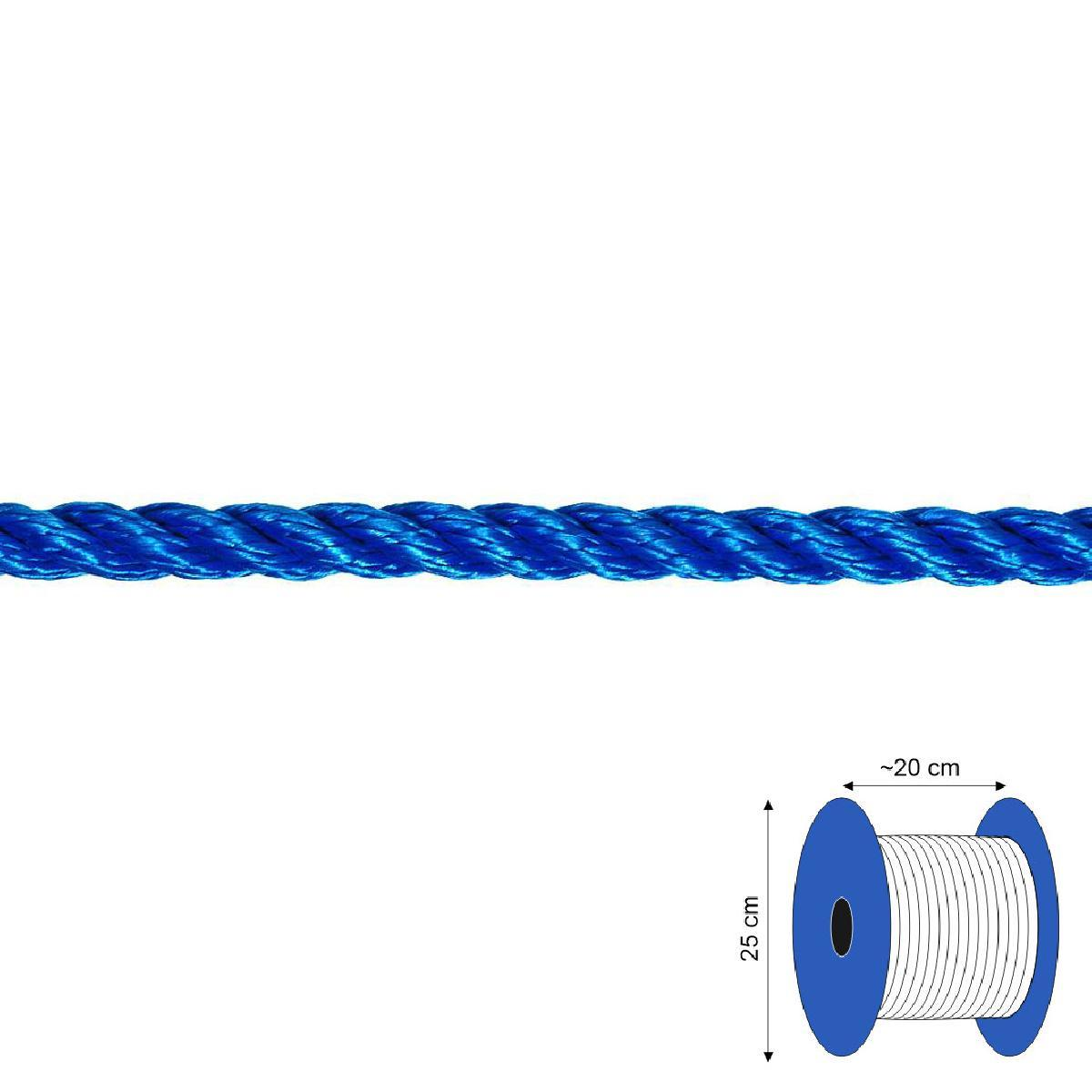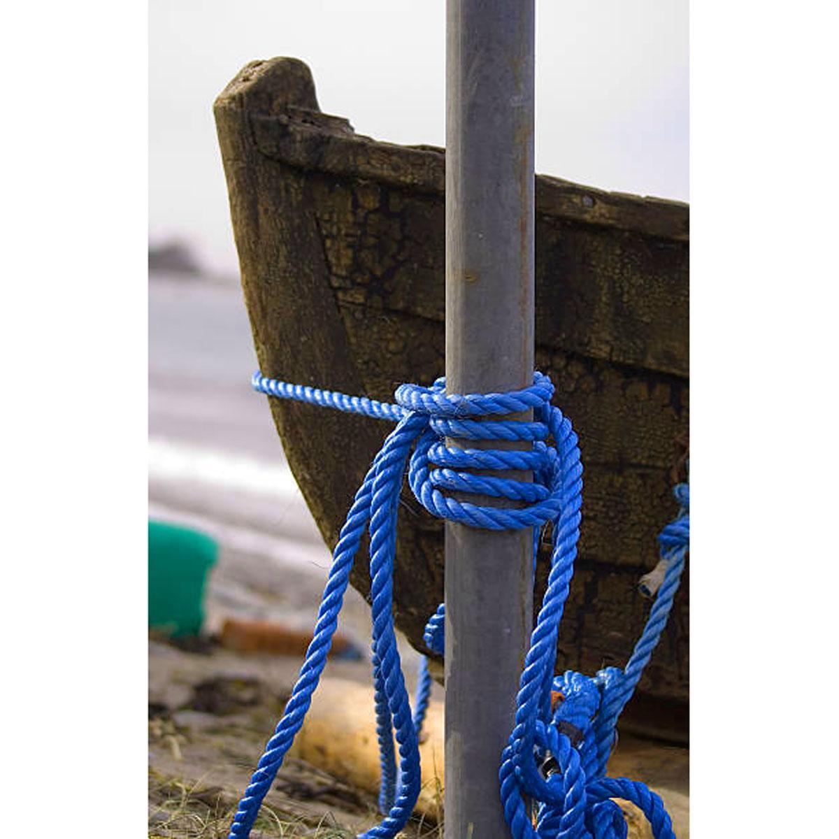 Sodrott kötél kék színben. Átmérő: 10, hosszúság: 100 m. Anyag: polipropilén.