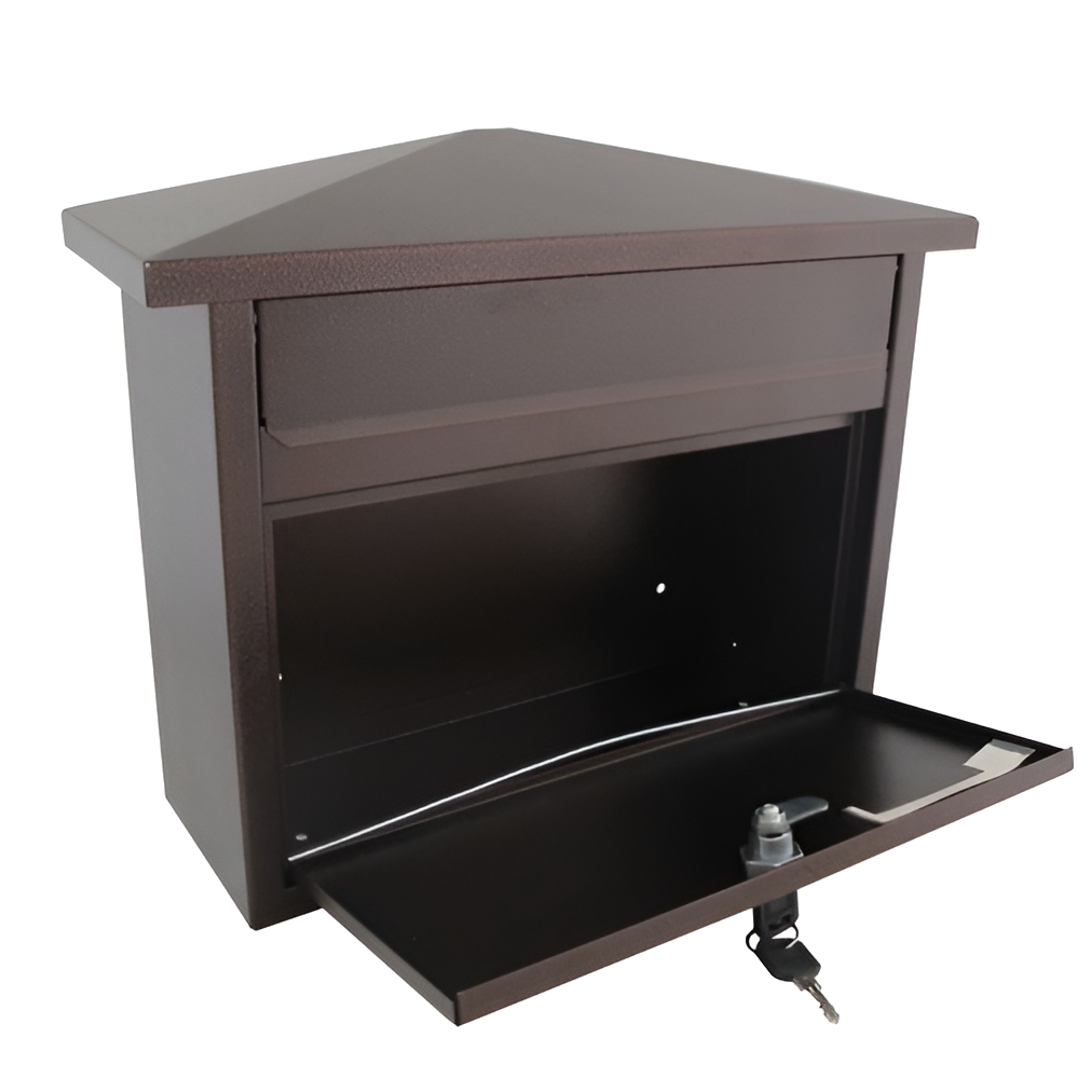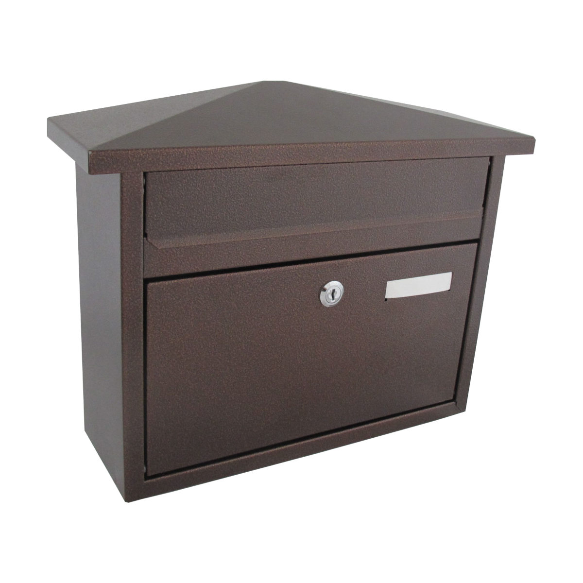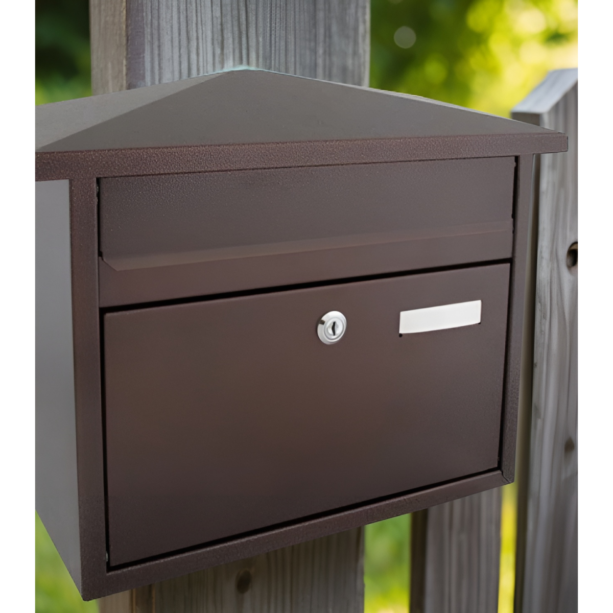 Apolló postaláda, barna színben. Időjárásálló antikolt kültéri festéssel. 2 bedobónyílással, 1 névtartóval, 2 db kulccsal. Mérete: 32x40x14 cm. Nagyszerű kiegészítő az otthonodhoz, melyek nemcsak stílusosak tudnak lenni, de biztonságosak is. Zárható, tehát a leveleid és fontos csomagjaid biztonságban vannak benne.