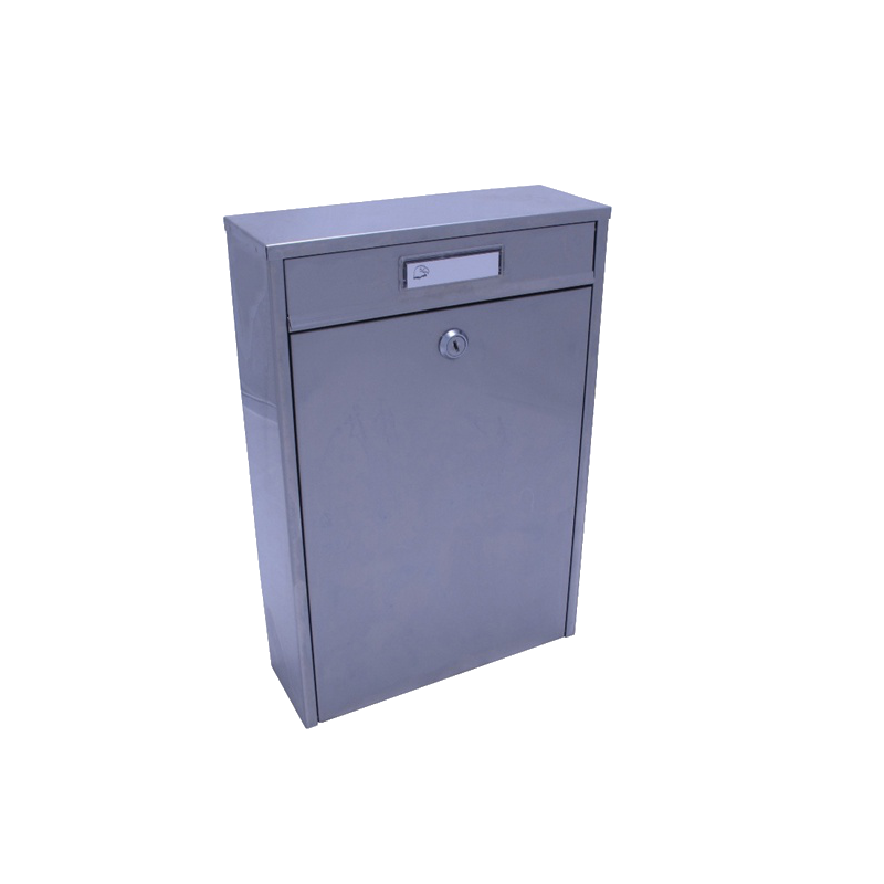 Inox színben, acéllemez, elõl zárható, kültérre, 2 bedobónyílással, 2 névtartóval, álló. Mérete 26x35x8 cm.