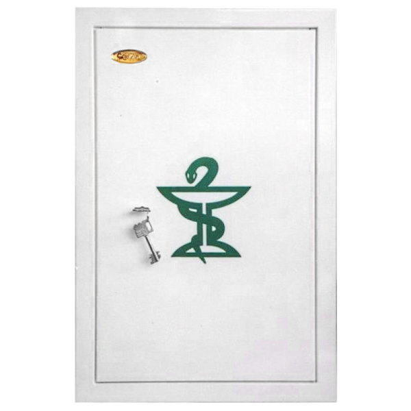 TREZOR BIZTONSÁGI GYÓGYSZERTÁROLÓ SZEKRÉNY 600X400X150 MM KULCSOS FEHÉR