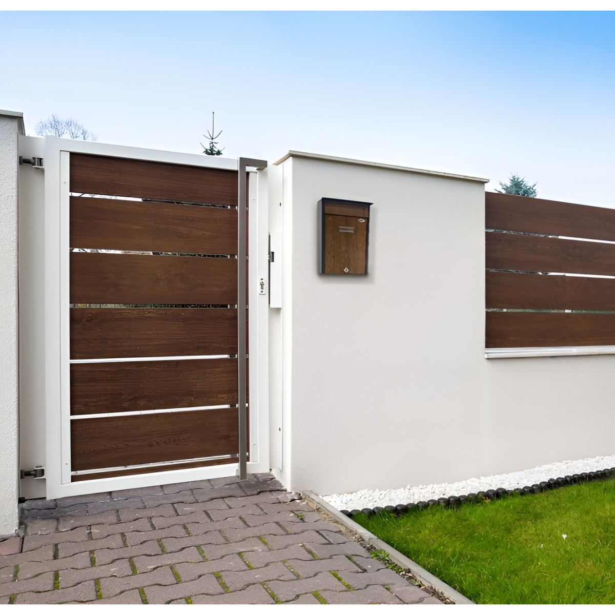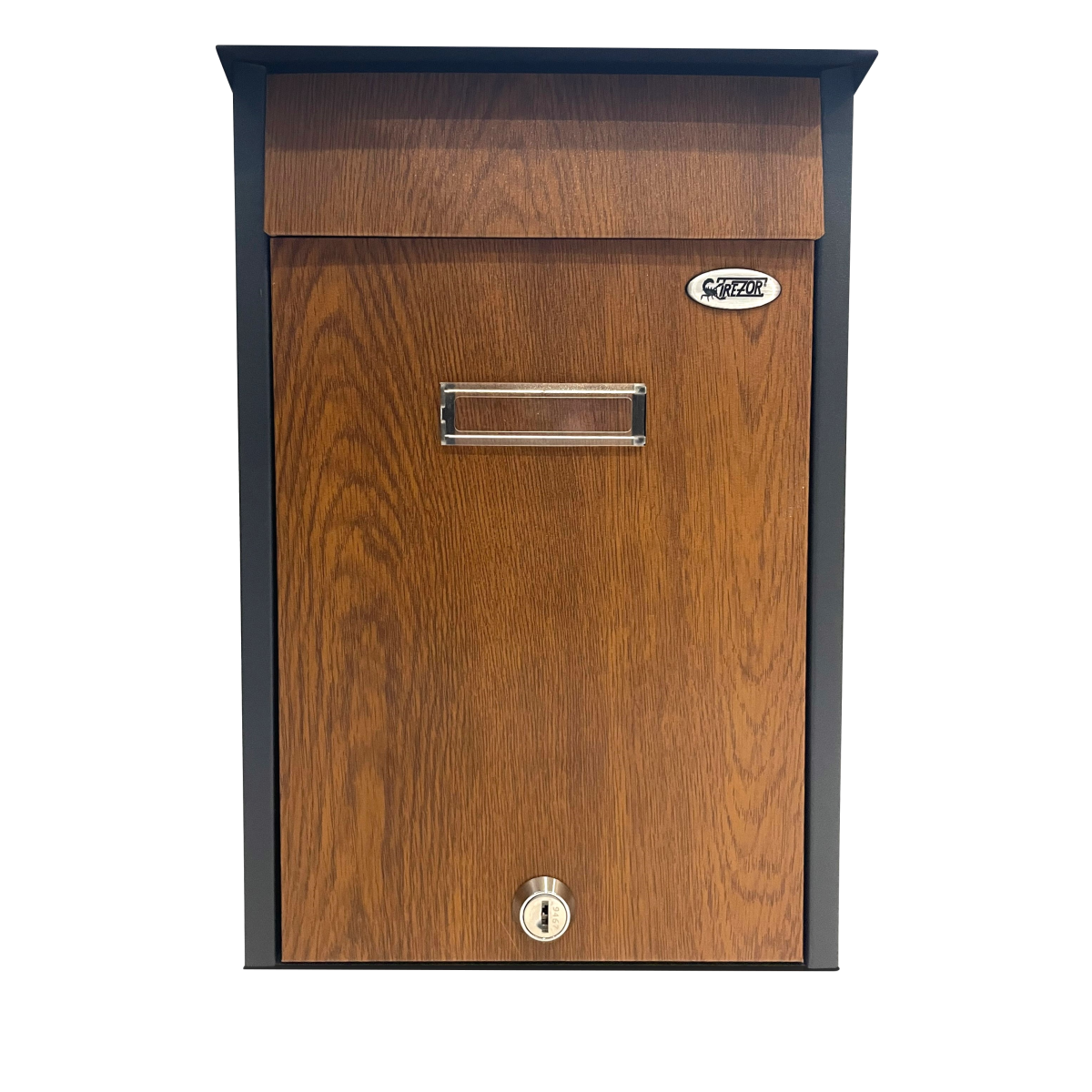 A TREZOR Posta I. kültéri postaláda egy modern és praktikus megoldás, amely elegáns antracit-aranytölgy színkombinációjával és fahatású design elemekkel kiemelkedik. Kétoldalas kialakítása révén könnyen felszerelhető kapura vagy kerítésre, mindkét oldalról hozzáférhető. A postaláda lopásgátlóval és időjárásálló anyagokból készült, így biztonságos és tartós választás.