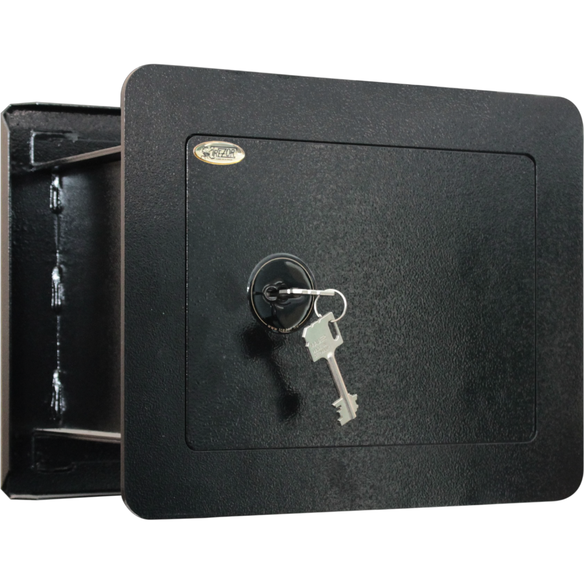 Falba illetve padlóba építhető, speciális kialakítású faliszéf, Erős, 2 mm vastag első osztályú acéllemezből készült acéltest, MABISZ A besorolás. A széf hátoldalán lévő megerősített lemez visszahajtott peremével fix rögzítést biztosít a betonágyazatba Duplafalú, megerősített ajtó EN 1300 szabvány szerinti "A" osztályú biztonsági széfzár. A zárszerkezetet 60 HRC keménységű anyag védi. Szín: Fekete. Tartozék: 2 db kulcs. Felületkezelés: Környezetbarát technológiával műanyag porszórással készült.