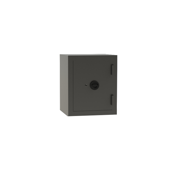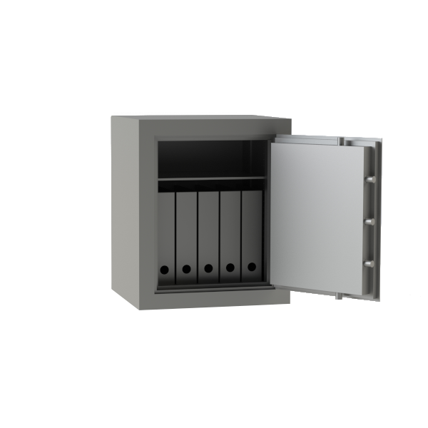 Biztonsági iratszekrény, MABISZ S2. A méretek gyűrűs mappákhoz igazítottak. 3 db állítható polc, zárás 3 irányba 5 ponton, dupla falú, külső zsanéros, belső trezor nélküli. Világos szürke színben. 30 perces tűzállóság. Magyar termék.