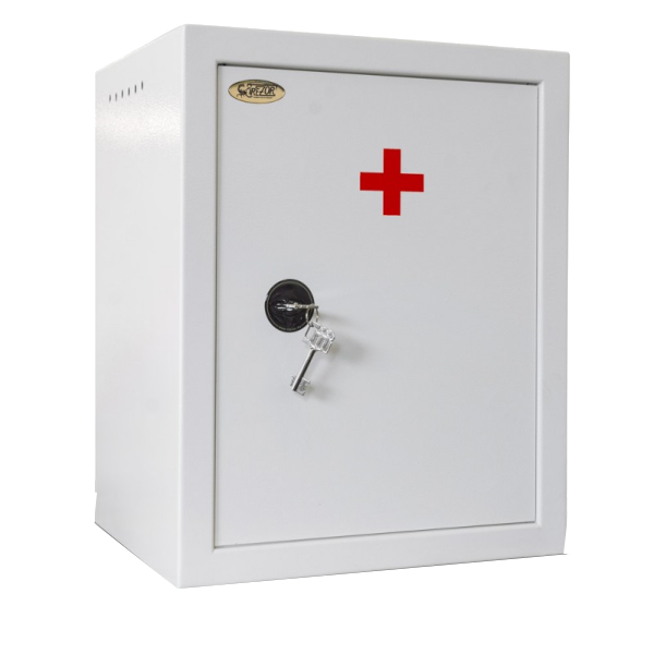 A TREZOR méregszekrényt gyógyszertárak, kórházak, rendelőintézetek, illetve valamennyi gyógyszeripari termék értékesítőjének és felhasználójának készséggel ajánljuk. Magas biztonsági fokú gyógyszertárolás, 2 mm vastag acéllemezből készült test, 5 mm vastag ajtóval. Ez a méregszekrény I. típus az illetéktelen hozzáférés megakadályozására megerősített ajtóval és minősített zárral van szerelve. Az előkészített rögzítő furatokon keresztül akár a falhoz is csavarozható a még biztonságosabb tárolás érdekében. Az állítható magasságú polc lehetővé teszi a gyógyszerek rendszerezését és elkülönítését . A szekrénytest hajlított alsó pereme megakadályozza a gyógyszerek kiesését. A méregszekrény ajtaján lévő piktogram hívja fel a figyelmet a veszélyes anyagokra. Kérhető speciális savtálcával is. Alapkivitelben EN 1300 szabvány szerinti mechanikus (kulcsos) zár. Alapszín: fehér. Magyar termék, mely a gyártó békéscsabai üzemében készül. Tartozékok: 2 db biztonsági kulcs, 1 db állítható polc, rögzítő csavarok, tiplik, figyelmeztető matricák.
