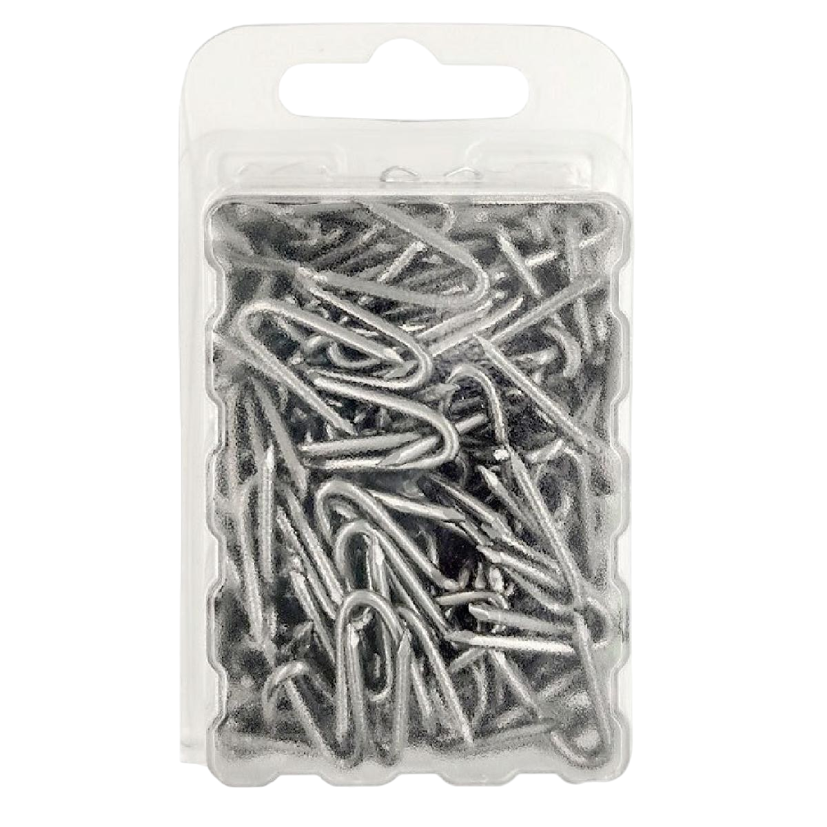 Kapocsszeg, U-szeg, mérete: 1,8x18mm. Szerelvények, huzalok faanyagokhoz való rögzítésére. Kalapáccsal könnyedén beüthető a kívánt helyre.