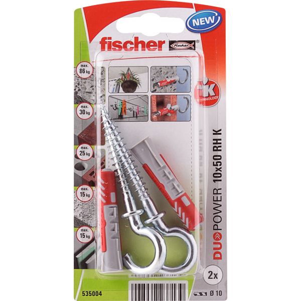 Fischer Duopower 10x50mm-es 2db dübel körkampóval - elő és átmenő szereléshez - feszítés, alakformálódás, csomósodás - alkalmazható: beton, tégla, gipszkarton, üreges födém, terméskő, forgácslap