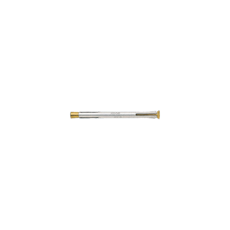 Fischer fém ablakkeretdübel ablak- és ajtókeretek gyors és stabil beszereléséhez. A teljes fémkivitelű dübel nagy nyíró igénybevételekre tervezett. Az alumínium-cink bevonat jó korrózióállóságot biztosít. Süllyesztett vagy lencsefejű csavarral szerelt. A metrikus menetű dübelt kézi vagy elektromos csavarhúzóval rögzíthetjük. A hasított hüvelyt a nagykeménységű kónusz úgy terpeszti, hogy a dübel a keretet nem húzza az építőanyag felé. Ez főleg távolságtartó és utólagos szereléseknél előnyös. Fém és műanyag profiloknál a dübelnyak bepattintásával húzás és nyomásálló rögzítés jön létre.