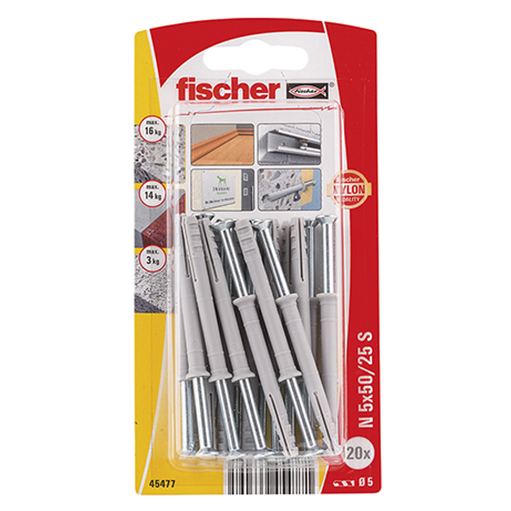 A Fischer beüthető dübel, 5 mm-es furatátmérővel, egyszerű és gyors szerelést tesz lehetővé. Beépített beütés elleni védelme megakadályozza az elakadást, így problémamentes szerelést biztosít. A szegcsavar menete és a csillagfejű tartóelem lehetővé teszi a csavar kicsavarását, ezáltal az utólagos leszerelés is könnyen megoldható. A szegcsavar beütésekor a dübel két irányban szétterpeszt, és így biztonságosan rögzül az építőanyagban. A faszerkezetek rögzítéséhez a süllyesztett fejű dübelt, fémszerkezetekhez a laposfejű dübelt, míg hosszú lyukakhoz a lencsefejű dübelt ajánljuk. Alkalmazási terület: fából és fémből készülő aljzatszerkezetek, fali csatlakozó- és vakolatidomok, fóliák, lemezek, kábel- és csőbilincsek, lyuggatott szalagok. A csomag tartalma: 20 db.