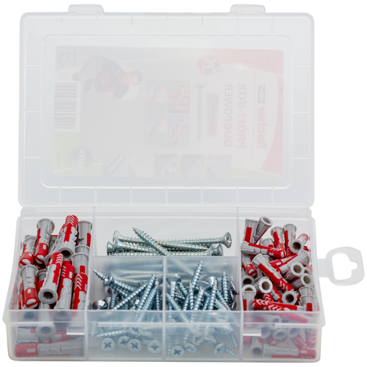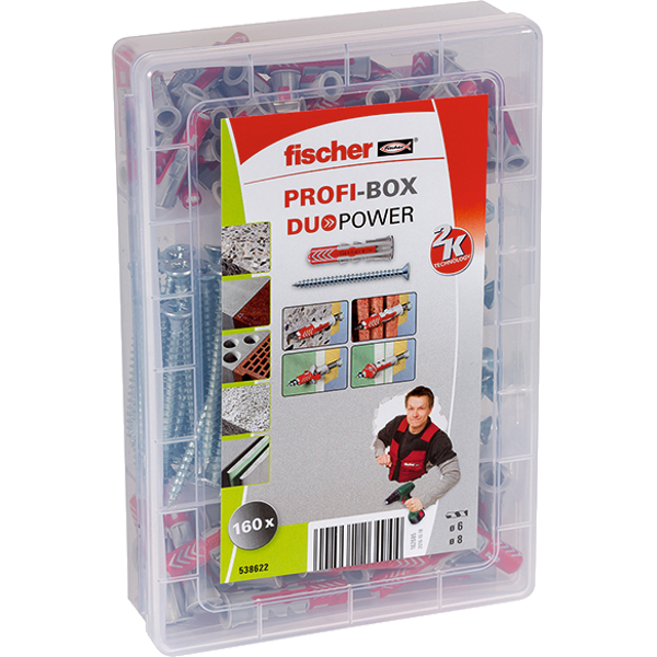 Dűbel szett "FISCHER DUOPOWER", 50 db, mérete: 6x30mm, 30 db 8x40mm dűbel - elő- és átmenőszereléssel, feszítés, alakformálódás, csomosódás. Alkalmazható: beton, tégla, gipszkarton, üreges födém, terméskő.
