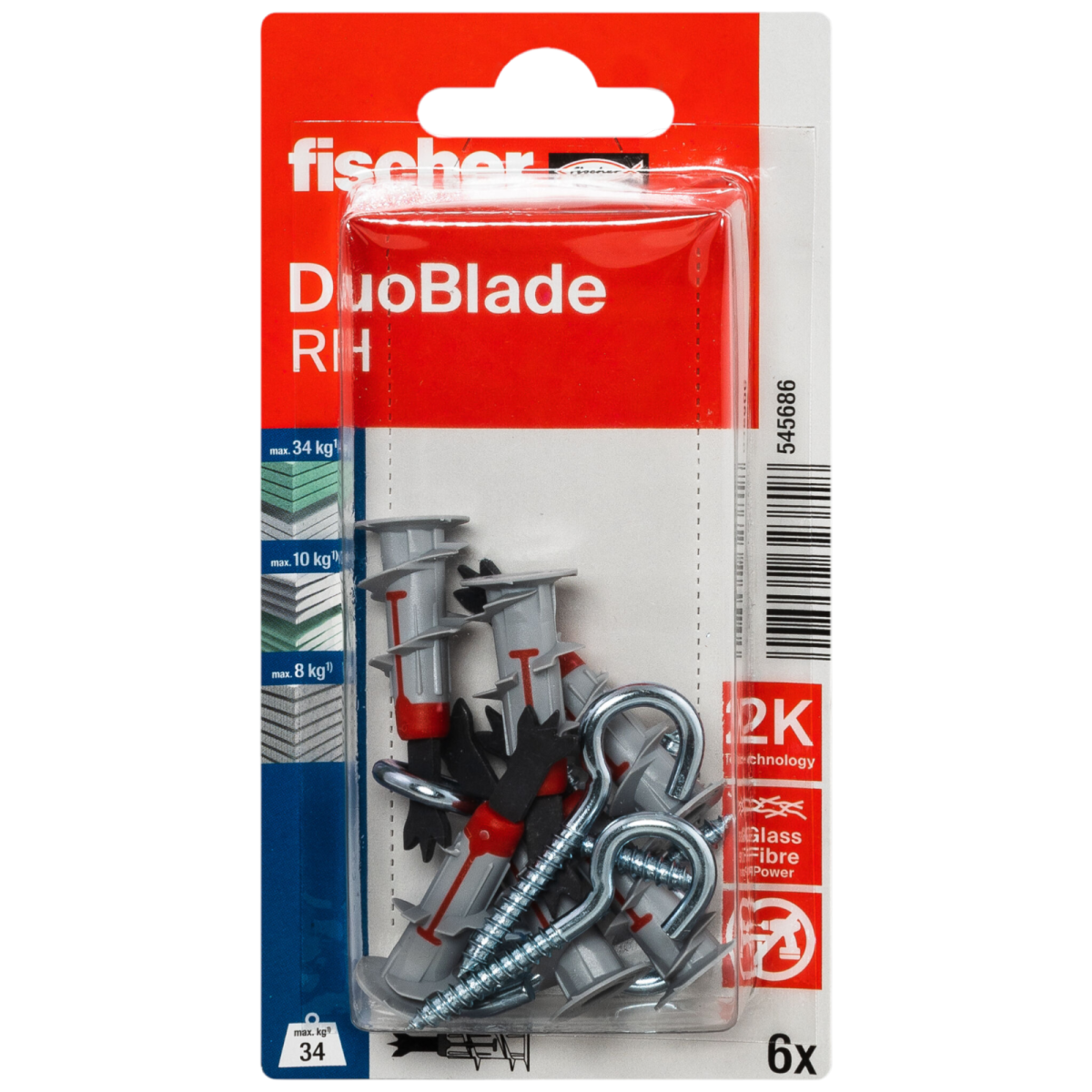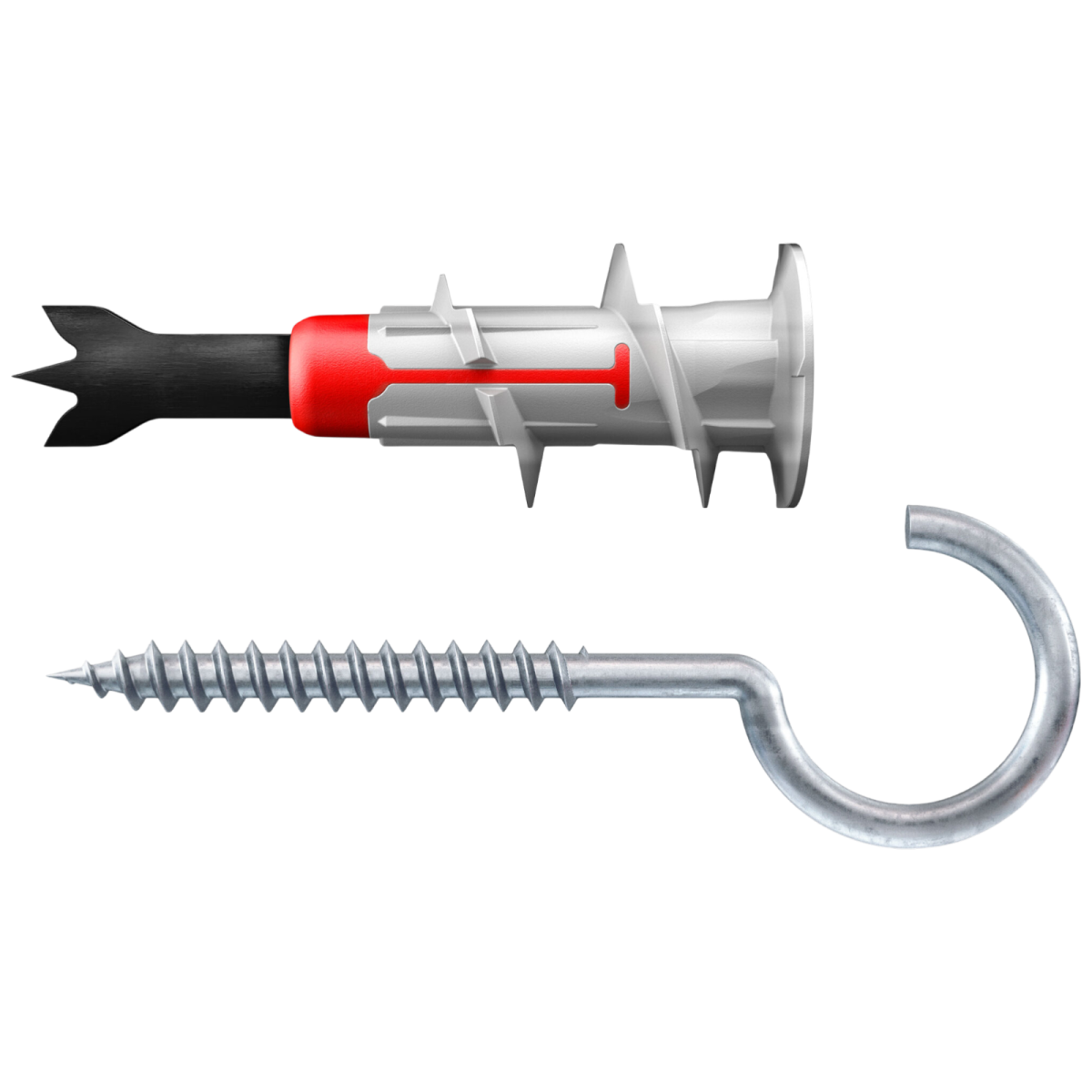 A Fischer DuoBlade RH K NV gipszkarton dübel + kampó készlet gyors és biztonságos megoldást kínál gipszkarton falakba történő rögzítésekhez. Az innovatív DuoLine kialakítás több anyag kombinációjával biztosít megbízható tartást, míg az önfúró hegy lehetővé teszi az egyszerű, tiszta szerelést előfúrás nélkül.