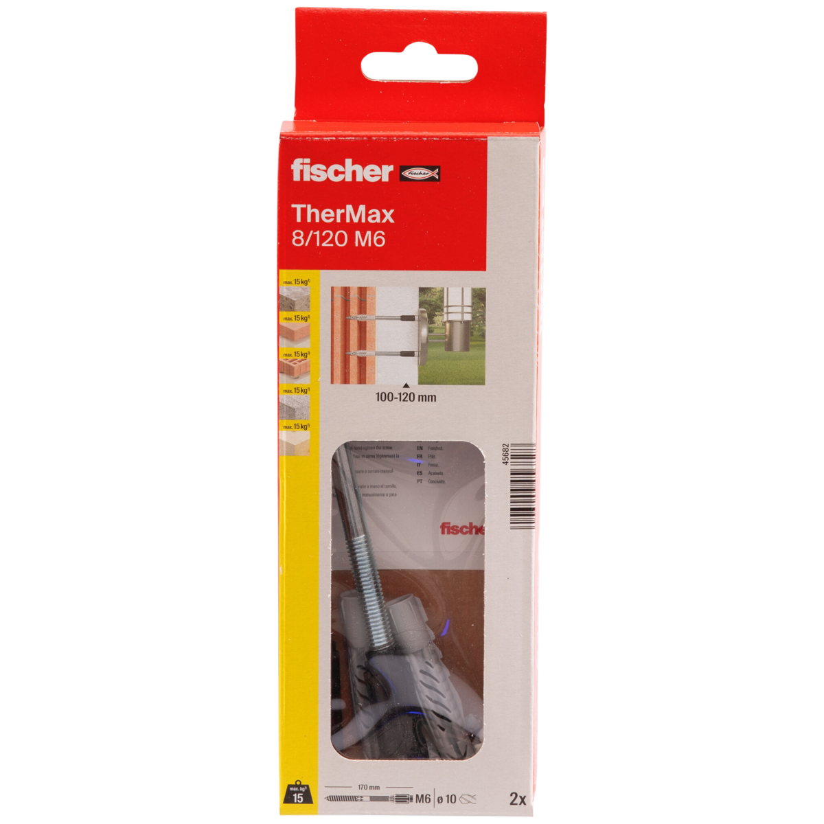 A fischer TherMax 8/120 M6 távtartó dübel kifejezetten hőszigetelt homlokzatokon (ETICS rendszereknél) történő hőhídmentes rögzítéshez készült. A tőcsavarral szerelt, üvegszál-erősítésű kónusz a szerelés során – speciális szerszám nélkül – a vakolaton keresztül belemaródik a hőszigetelő anyagba, stabil kapcsolatot hozva létre az alapfelülettel.