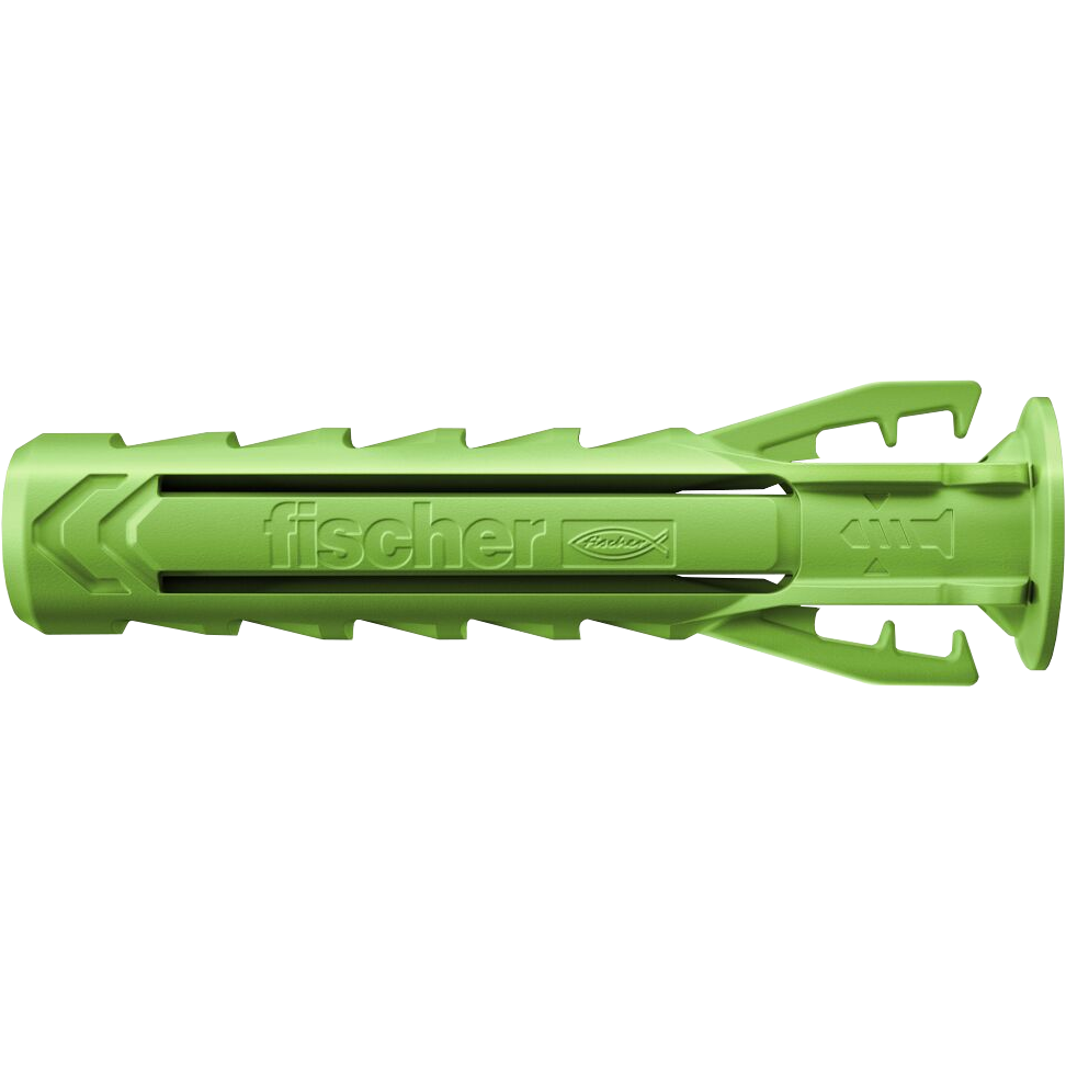 Minden SX Plus Green legalább 50% újrahasznosított alapanyagokból készül. A 4 irányú feszítésének köszönhetően a fischer SX Plus dübel a tömör építőanyagok, például beton, mészhomoktégla és egyéb falazatok specialistája. A speciális rögzítőpengék biztosítják a csavar előrögzítését, aminek köszönhetően a fej feletti beépítéseknél nem kell külön azt megtartani. Ezáltal rugalmas és kényelmes szerelési folyamatot tesz lehetővé a felhasználó számára. A rugalmas perem megakadályozza, hogy a dübel mélyebbre csússzon ezáltal még biztonságosabb telepítést kapunk.