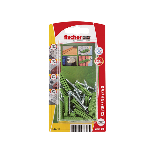 Legalább 50% megújuló nyersanyagból készült és ezáltal nagy mértékben környezetbarát. Hatékony és biztos tartás mint a hagyományos SX dübelnél. A négyirányú terpesztőzóna optimális feszítőerő elosztást eredményez az építőanyagban, és maximális kihúzóerőt biztosít tömör és üreges anyagokban. A dübelgallér (perem) megakadályozza a csempe vagy vakolat lepattogzását, és megakadályozza a dübel nemkívánt becsúszását a furatba. Az egyszerű, gyors szereléssel értékes időt takaríthatunk meg. Az SX dübel alkalmazható elő- és átmenőszereléssel. Fa- vagy faforgács-csavarokkal és ASL távtartócsavarral kombinálható.
