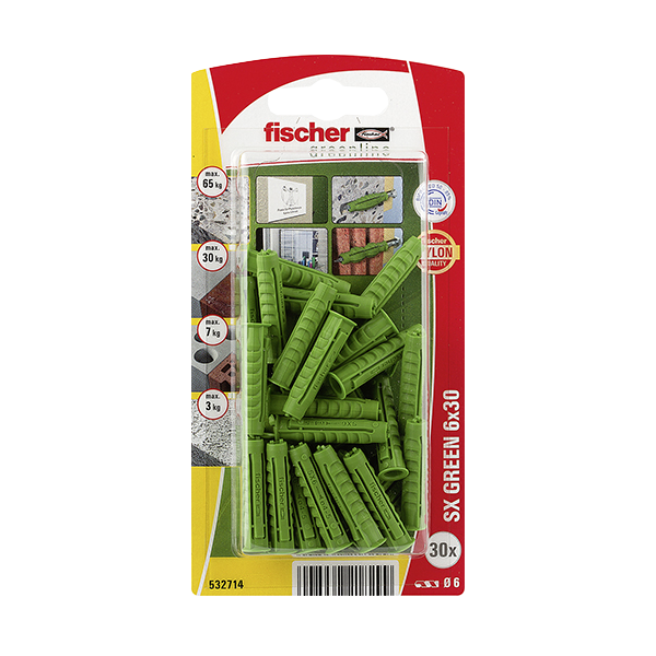 Legalább 50% megújuló nyersanyagból készült és ezáltal nagy mértékben környezetbarát. Hatékony és biztos tartás mint a hagyományos SX dübelnél. A négyirányú terpesztőzóna optimális feszítőerő elosztást eredményez az építőanyagban, és maximális kihúzóerőt biztosít tömör és üreges anyagokban. A dübelgallér (perem) megakadályozza a csempe vagy vakolat lepattogzását, és megakadályozza a dübel nemkívánt becsúszását a furatba. Az egyszerű, gyors szereléssel értékes időt takaríthatunk meg. Az SX dübel alkalmazható elő- és átmenőszereléssel. Fa- vagy faforgács-csavarokkal és ASL távtartócsavarral kombinálható.