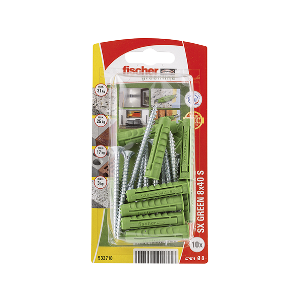 Legalább 50% megújuló nyersanyagból készült és ezáltal nagy mértékben környezetbarát. Hatékony és biztos tartás mint a hagyományos SX dübelnél. A négyirányú terpesztőzóna optimális feszítőerő elosztást eredményez az építőanyagban, és maximális kihúzóerőt biztosít tömör és üreges anyagokban. A dübelgallér (perem) megakadályozza a csempe vagy vakolat lepattogzását, és megakadályozza a dübel nemkívánt becsúszását a furatba. Az egyszerű, gyors szereléssel értékes időt takaríthatunk meg. Az SX dübel alkalmazható elő- és átmenőszereléssel. Fa- vagy faforgács-csavarokkal és ASL távtartócsavarral kombinálható.