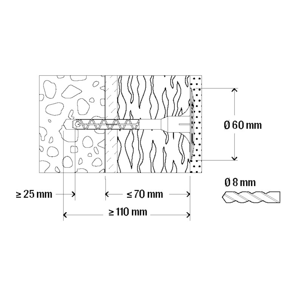 A TermoFix PN beütődübel minden általános, engedélyt nem igénylő alkalmazáshoz. A TermoFix PN segítségével a polisztirolból, ásványgyapotból vagy szálas puhafából készült lépésálló hőszigetelő táblák biztonságosan rögzíthetők tömör és üreges építőanyagokra. Az ETICS rögzítőelem egy tányéros dübel hüvelyből és egy külön mellékelt műanyag szegből áll. A TermoFix PN kalapáccsal építhető be, és ezáltal szerelési időt és költségeket takarít meg. Az üvegszál erősítésű műanyag szeg minimálisra csökkenti a hőhidat.