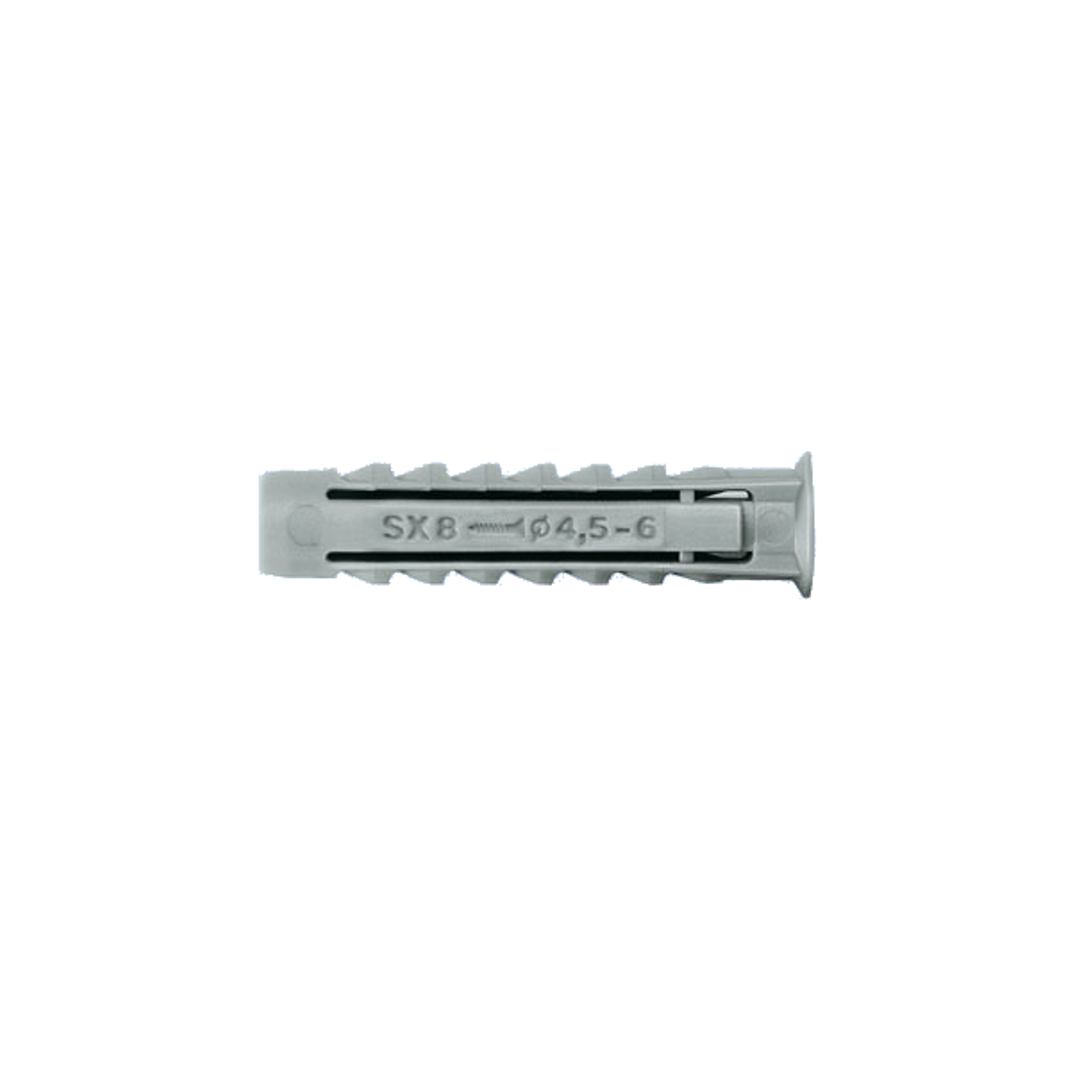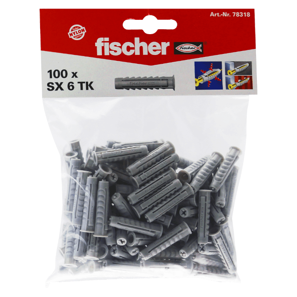 Az erős Fischer nylondübel 6 mm-es furatátmérővel és négyszeres terpesztéssel és nagyobb kihorganyzási mélységgel rendelkezik, mely az erős és optimális bevezetését biztosítja az építőanyagba, illetve nagy tartási biztonsági értéket eredményez. A terpesztő nyomástól mentes dübelnyak megakadályozza a csempe, vakolat sérülését, a préselt perem pedig azt, hogy a dübel mélyre csúszhasson be a furatba. Nagyobb kihorganyzási mélysége révén a dübel különösen alkalmas üreges építőanyagokban vagy sejtbetonban való rögzítésre és a vakolat áthidalására. Kategóriájában a legnagyobb kihúzóerővel bír, és tömör anyagokban maximális teherbírású. Az SX-L üreges anyagokban ad maximális kihúzóerőt. Minden anyaghoz, betonhoz, falazatokhoz, sejtbetonhoz (Ytong) és üreges téglákhoz alkalmas. Fa- és faforgács-csavarokhoz C4-10 mm-ig tipizált. Minden tárgy rögzítéséhez alkalmas, melyeket fa-, faforgács-csavarral kívánunk rögzíteni, pl. falipolcok, faliszekrények, karnisok, szekrények, lábazatlécek, könnyű konzolok, elektromos kapcsolók, kábelcsatornák, kábelkapcsok, lámpák, képek, faliórák, virágtartók, postaládák, szárítókötelek, antennák stb. A beütőzár miatt a perem a vakolaton átüthető, amely majd az építőanyagon fekszik fel. Alkalmazhatók: lámpák, gardróbok, mozgásérzékelők, szegélylécek, kis fali polcok, könnyű tükrös szekrények, postaládák, tv-konzolok, növényfuttató rácsok, zsalugáterek, fürdőszobai és WC-berendezések. A csomag tartalma: 2 db. A dübel közvetlen és átmenőszereléshez is alkalmas. Extrém biztonság: a négyirányú terpesztőzóna minden építőanyaghoz illeszkedik. A terpesztőfunkció és minőségi nylon kombinációja a legnagyobb kihúzóerőt garantálja. - Sokoldalúság: alkalmazási területe a tömör anyagoktól az üreges falakig a teljes spektrumot lefedi. A csavar megengedett tűrése biztos alkalmazást nyújt különböző fajtájú és eltérő átmérőjű fa- vagy pozdorjacsavarok esetén. Szerelésbarát - A beütési zár előszerelt csavar esetén lehetővé teszi az optimális átmenőszerelést. A dübelgallér megakadályozza az SX dübel becsúszását, de szigetelésként vagy felfekvő alátétként is hat. Stabil elfordulásgátló rögzíti a dübelt, csúcsminőségű poliamid (nylon) biztosítja a legnagyobb kihúzóerőt, az öregedés-, hő-, és korrózióállóságot. Különböző kémiai anyagokkal szemben is ellenálló (vizsgálati jegyzőkönyvek külön kérésre rendelkezésre állnak.). Rendkívüli szívóssága és rugalmassága révén hang- és rezgéscsillapítóként is hat, hőállósága -40 °C...+80 °C.