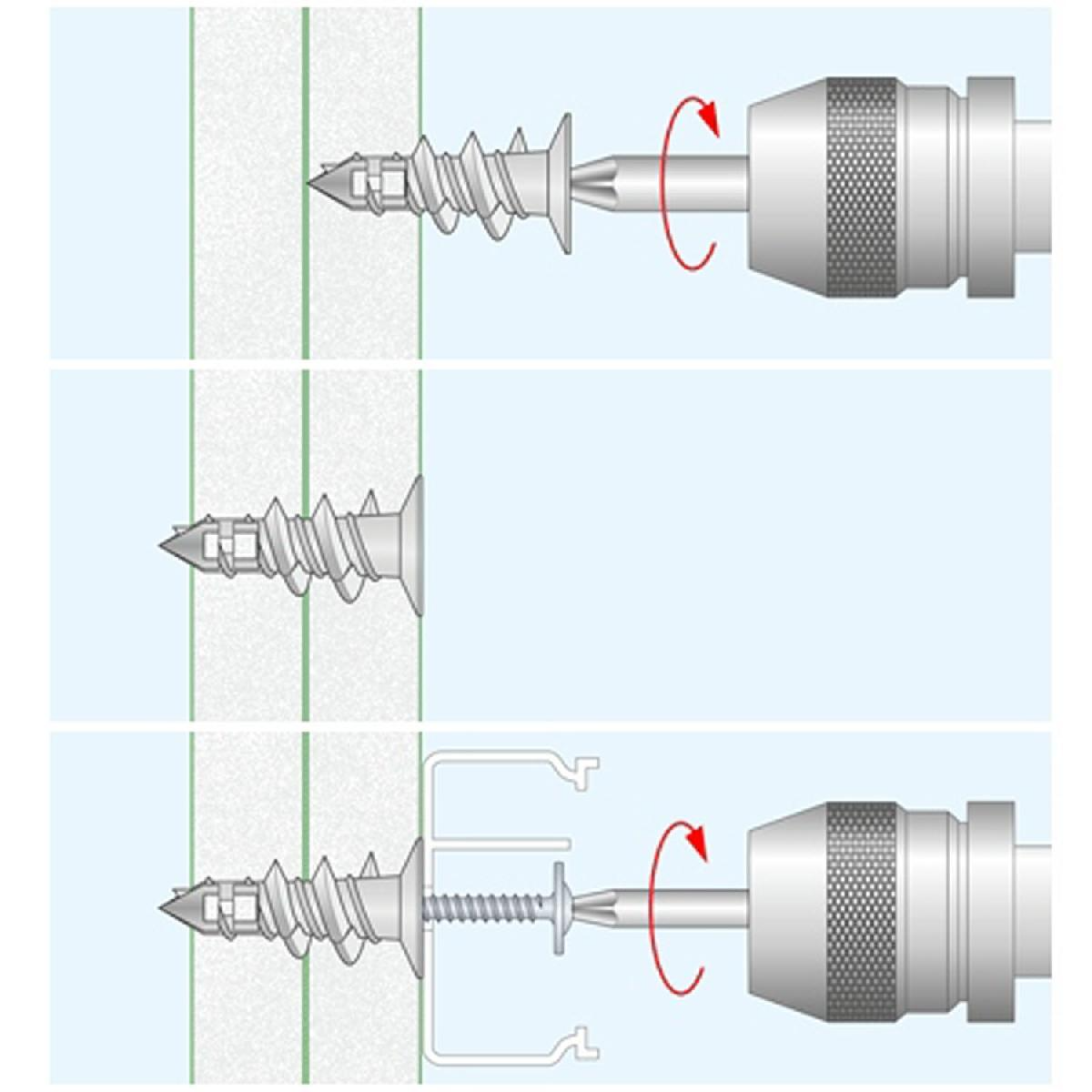 Szerelvények gipszkartonhoz való rögzítésére szolgál. Az előre létrehozott furatba helyezze be a tiplit a csavarral. Önfúró, előfúrás nélkül könnyen behajtható gipszkartonba, a behajtott csavar stabil rögzítést biztosít.