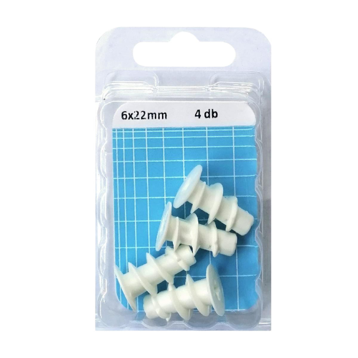Műanyag gipszkarton tipli 6x22 mm méretben, 4 db/csomag kiszerelésben. Szerelvények gipszkartonhoz való rögzítésére szolgál. Az előre létrehozott furatba helyezd be a tiplit.