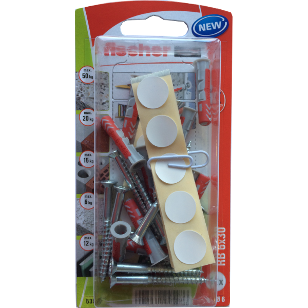 Fischer Duopower 12 részes kétkomponensű dübel csavarral, matricával.