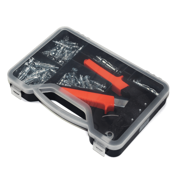 Fali rögzítő készlet, 72-részes, műanyag tárolódobozban, átlátszó tetővel. Szerkezeti anyagok: alumínium / acél ötvözet, PVC markolat. 4 különböző méretű rögzítőelem: 25 db M4 x 32 mm, 18 db M4 x 38 mm, 20 db M5 x 37 mm, 8 db M5 x 52 mm. Rögzítőelemek hossza: 32 - 52 mm, átmérő: 8 - 9 mm.