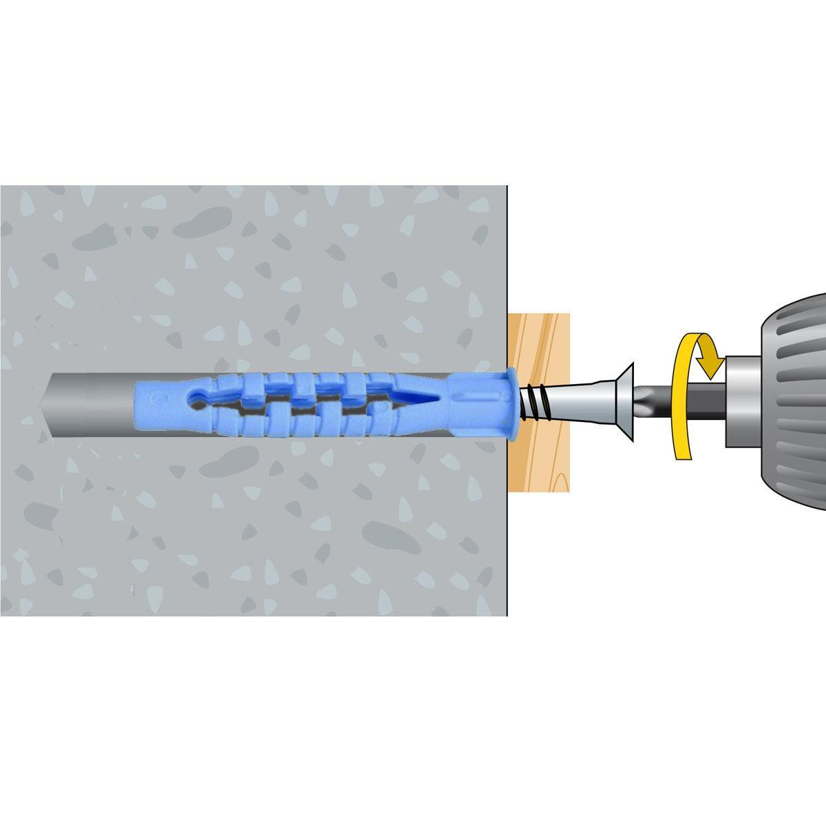 Beton és tégla szerkezetben rögzíthető. A megfelelő méretű furatba a tiplit kalapáccsal enyhe ütéssel helyezze be.