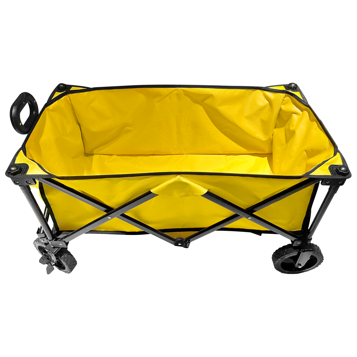 Az összecsukható kocsi alkalmas különböző tárgyak, eszközök mozgatására. Tökéletes társ kertészeti, hobbi és szabadidős tevékenységekhez. Ez a kompakt változat összecsukott állapotban keskenyebb, oszlopos formájú. Néhány egyszerű lépéssel a kocsit össze lehet csukni. Teleszkópos, párnázott fogantyújával kényelmes húzni, egyszerű kormányozni. Egyik végén két külső zseb/tartó található, pl. flakonok is kényelmesen elhelyezhetők benne. Tároló mérete: kb. 87 x 45 x 29cm. Teljes mérete fogantyú nélkül: kb. 90 x 48 x 54cm. Méret összecsukott állapotban: kb. 73 x 20 x 36cm. Kerekek mérete: 178 x 44mm. Fekete váz és sárga ponyva színben érhető el, vízlepergető gyöngyvászon (600D Oxford).