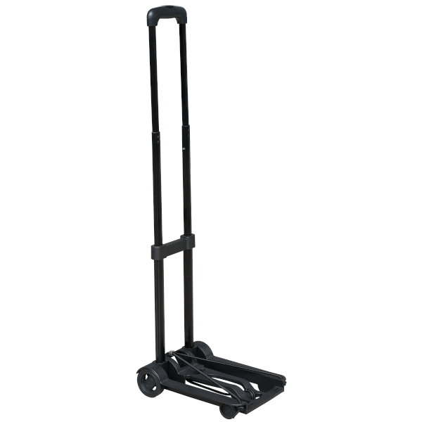 Maximális terhelhetőség: 40 kg. Méretek összecsukva: 450 x 230 x 85 mm. Méretek szétnyitva: 330 X 230 X 960 mm. A rakfelület méretei: 320 x 230 mm. Súlya: 1,3 kg. Kerék 75 mm, tömör. Alapanyaga: fém, műanyag, gumi. A megadott maximális terhelés nem lehet pontszerű/ részleges terhelés, amely igen kicsi, de nagy súlyú, ill. igen kis területen felfekvő felületű tárgyaktól származik, mivel ezeknél deformáció következhet be az eszközben.