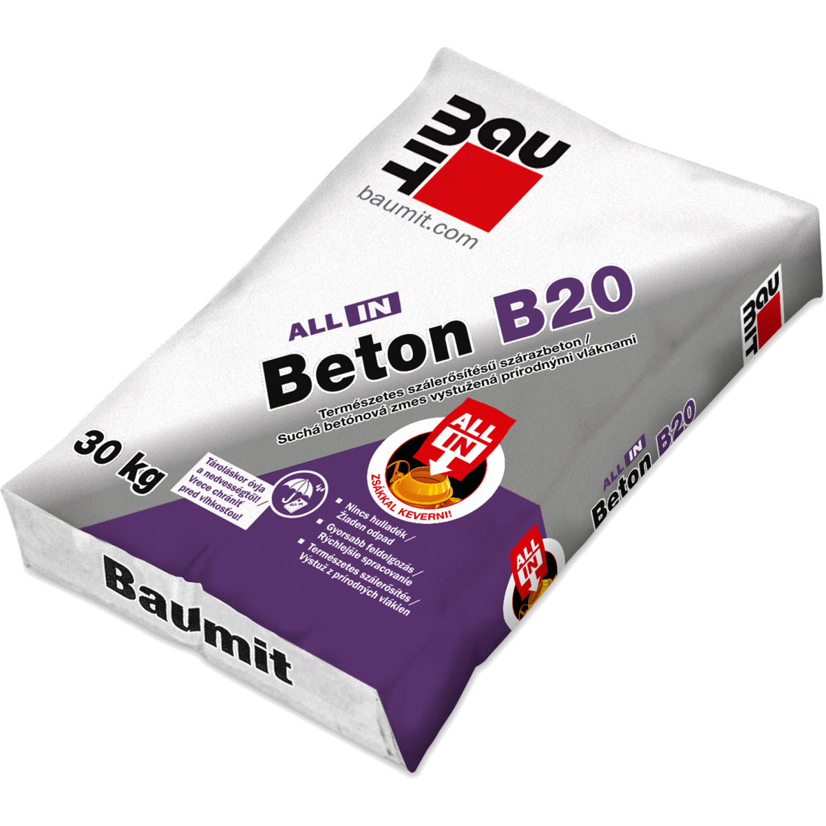 Előkevert, fagyálló, természetes szálerősítésű C16/20 osztálybesorolású szárazbeton, statikai követelmények nélküli betonozási munkákhoz, innovatív zsáktechnológiával.