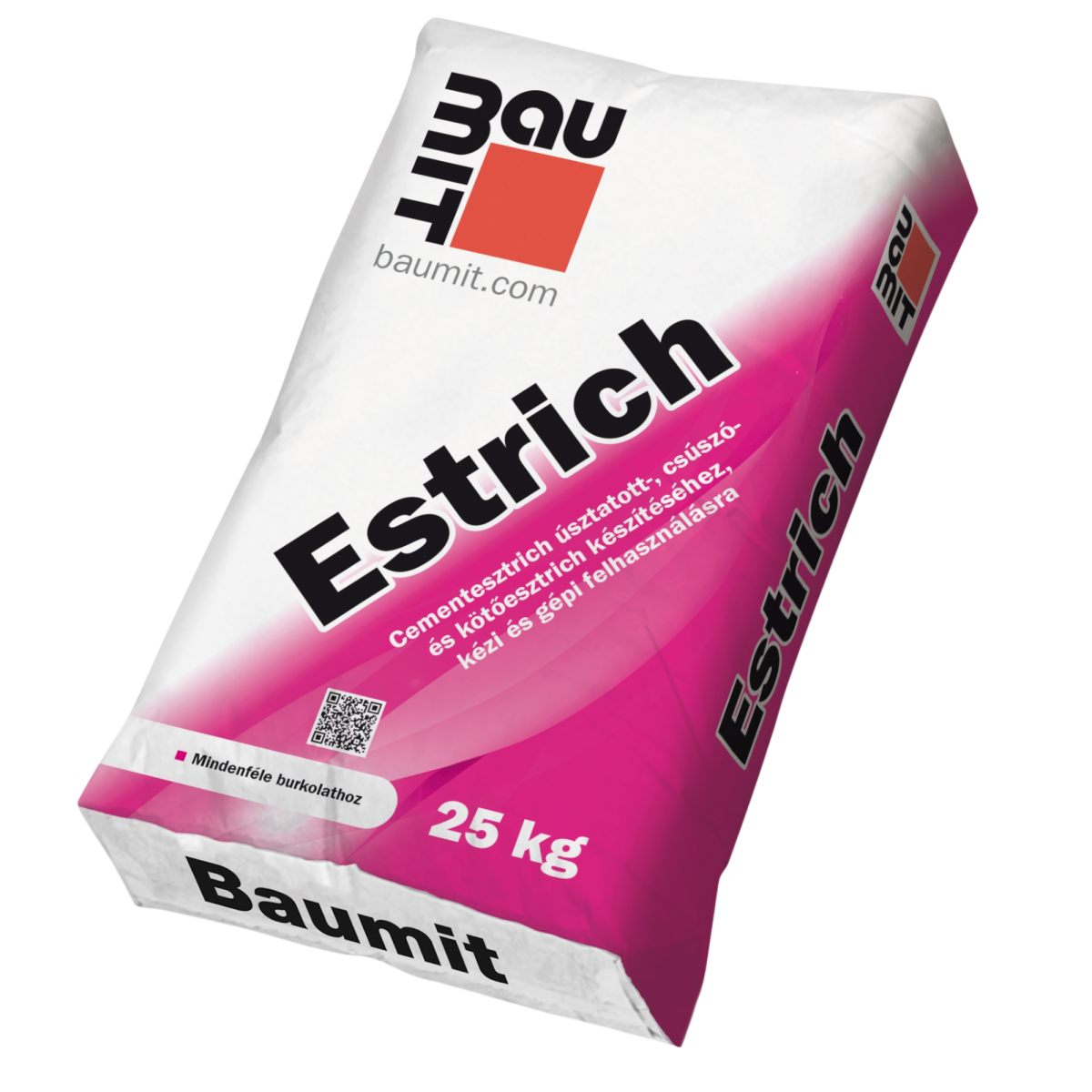 A Baumit Esztrich egy cementkötésű (MSZ EN 13813 CT-C20-F4) esztrich, amely alkalmas úsztatott, csúszó és kötőesztrich rétegek kialakítására. Padlófűtéshez is megfelelő, így sokoldalúan használható lakó- és ipari jellegű felületeken egyaránt. A kész felület minden típusú burkolat alatt megbízható aljzatot biztosít. A szükséges rétegvastagság legalább 35 mm, amely terheléstől függően növelhető.