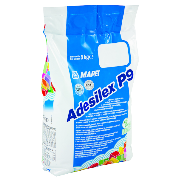 Adesilex P9 csemperagasztó, 5 kg, fehér, cementkötésű ragasztóhabarcs. Kerámia burkolólap és kerámiamozaik ragasztására, bel- és kültéri padlón és falon, hagyományos cementkötésű vakolt falakra, cementkötésű esztrichekre, (megfelelő alapozás után) anhidrid esztrichekre és gipsztartalmú falakra, beltéri falakon szilárd festékrétegre, meglévő műkő és márvány burkolatú padlókra (legfeljebb 900 cm2 lapméretig), feszültségmentes betonszerkezetekre, kerámia és mozaik burkolólap ragasztására medencékben és fürdőkben (legfeljebb 300 cm2 lapméret stabil aljzaton). Fokozott terhelhetőségű, lecsúszásmentes, nyújtott nyitott idejű, anyagszükséglet: 2-5 kg/m2.