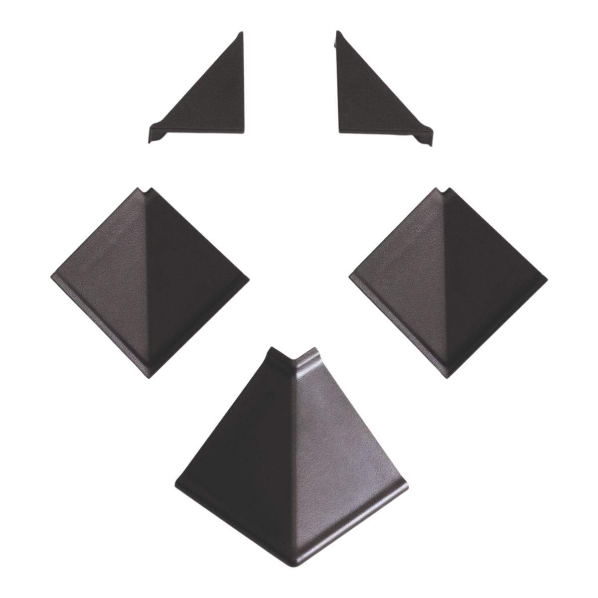 Ez a fekete színű vízzáró egységcsomag a konyhai munkalap és a fal csatlakozásánál használt vízzáró profil kiegészítésére szolgál. A csomagban található elemek segítségével a vízzáró profil sarkainak és végeinek esztétikus, záródó kialakítása valósítható meg. Illeszkedik a CLASSIC-sorozat standard konyhai munkalapjaihoz és a hozzájuk tartozó vízzáró profilokhoz.