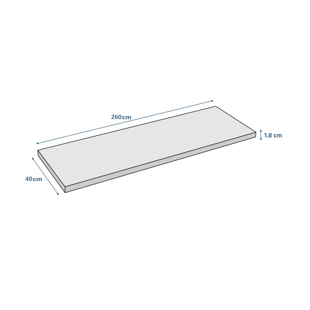 belső tér alakításához, illetve kisebb tárgyak / dekorációk tárolására. Artizán tölgy színű, 18 mm vastag, 260 x 40 cm méretű. 2 hosszanti oldalán élfóliázott, aminek köszönhetően növeli a tartósságot és esztétikus megjelenést biztosít.