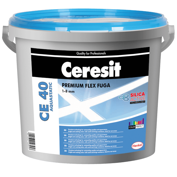 Aquastatic vízlepergető, flexibilis fugázó 1-8 mm. Kül és beltéri, víz és szennyeződéstaszító fugázó, kerámia , üveg, kő és mozaiklapok hézagolására. Alkalmas padlófűtésre, gipszkartonra és faforgácslapra történő burkolás esetén is. A vízcseppeket lepergeti, így megakadályozza a szennyeződés fugába kerülését. Anyagszükséglet: 0,2-0,6 kg/m2.