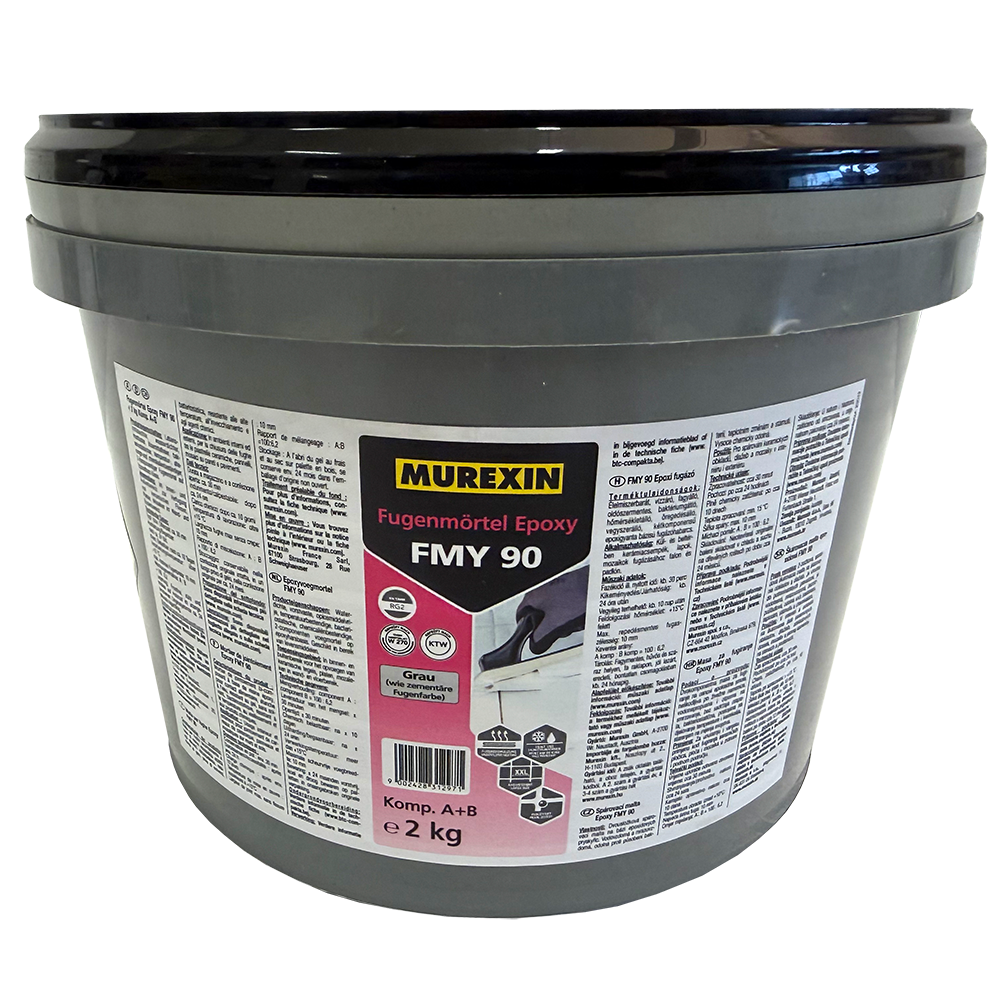 FMY 90 epoxi fugázó szürke 135 – 2 kg (A+B komponens) nagy igénybevételre tervezett, kétkomponensű epoxigyanta bázisú fugázóhabarcs, amely kül- és beltéri burkolatoknál egyaránt alkalmazható. Élelmiszerbarát, vízzáró és oldószermentes összetétele lehetővé teszi a higiénikus felhasználást, miközben ellenáll a nedvességnek, a vegyi hatásoknak és a hőmérséklet-ingadozásnak is.